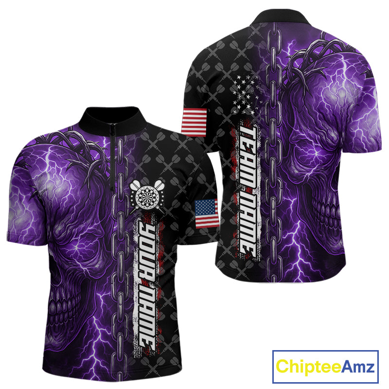 Personalized Purple Darts Skull Thunder Lightning Darts Shirt For Men, US Flag Darts Team Jersey TDM4614