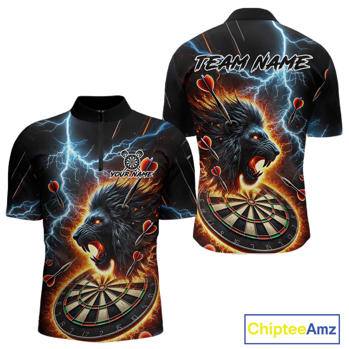 Personalized Thunder Lightning Lion Darts Shirt For Men Custom Darts League Jersey Polo & 1/4 Zip TDM4619