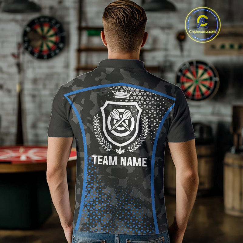 Black And Blue Camo Dart Shirt With Pocket Option For Men Custom Dart Jersey TDM4651
