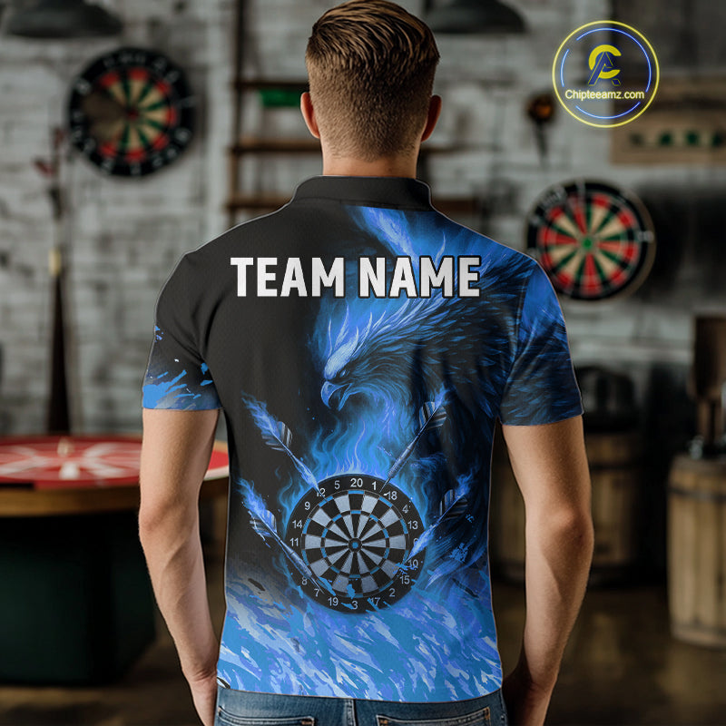 Blue Flaming Phoenix Darts Jerseys Custom Darts Shirt For Men, Darts Team Polo & Quarter Zip TDM4663