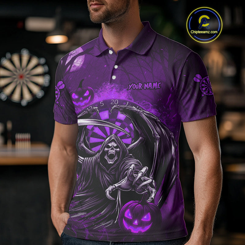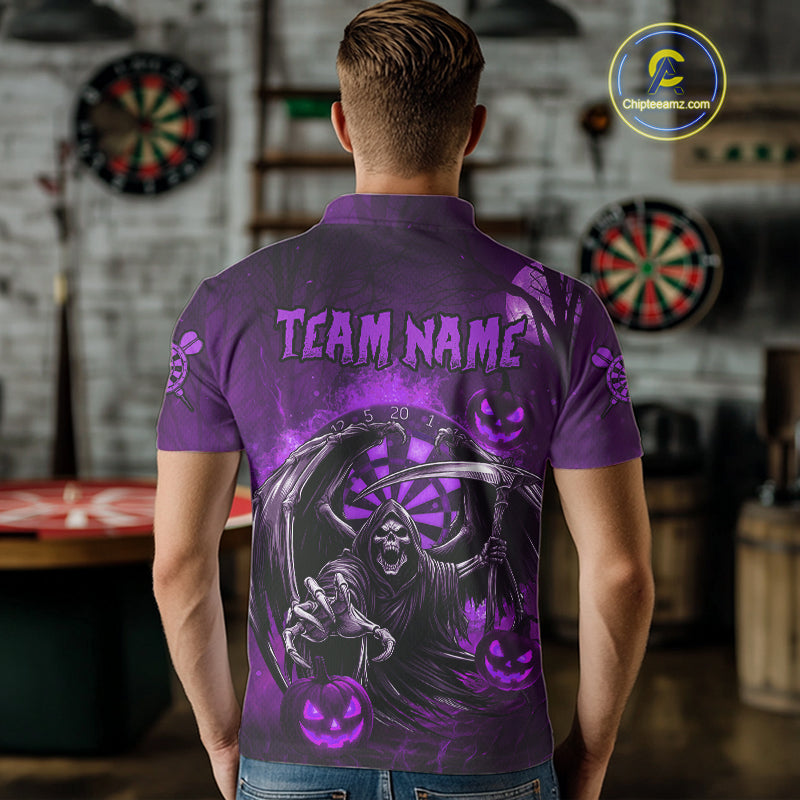 Funny Purple Grim Reaper Halloween Darts Shirt For Men Custom Darts Jersey Team Polo & Quarter Zip TDM4667