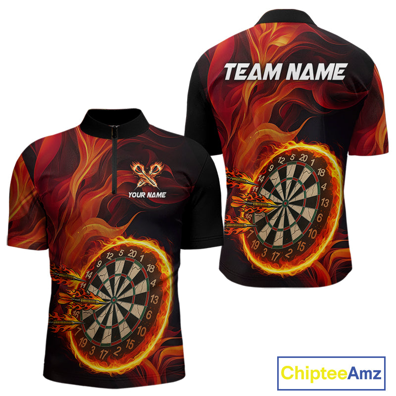 Red Flaming Dartboard Shirt For Men Custom Fire Darts Jersey Polo & Quarter Zip Team Uniform TDM4675