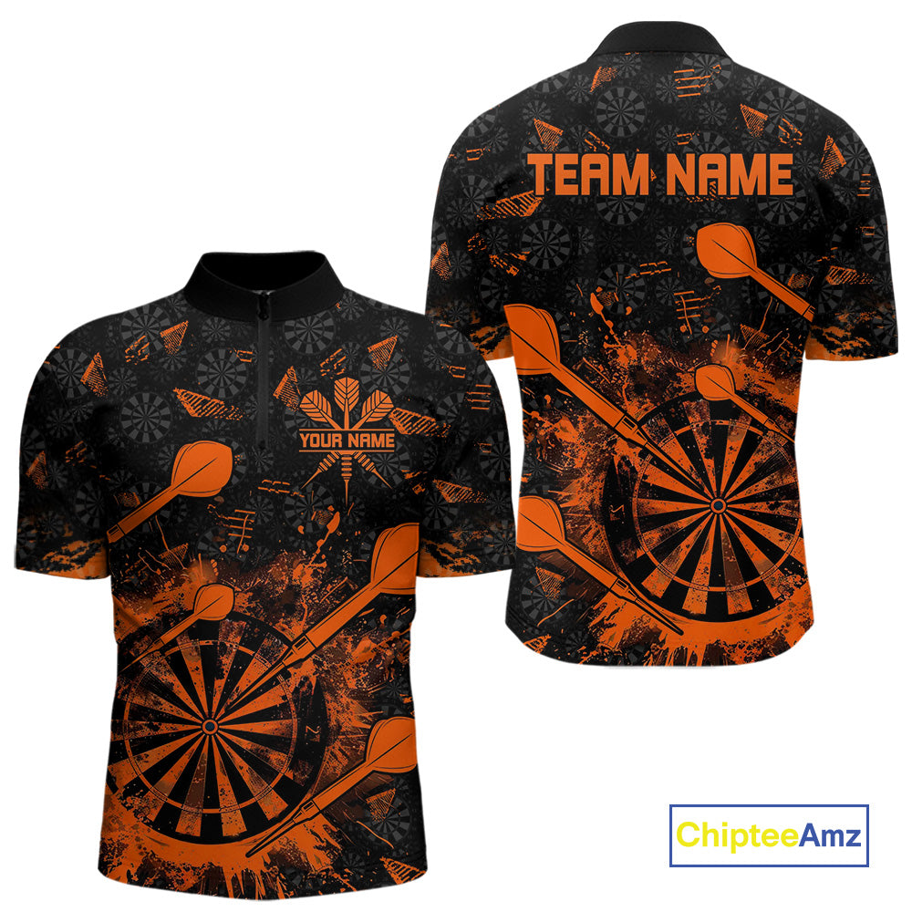 Black And Orange Grunge Darts Polo, Quarter Zip For Men Custom Dart Shirts For Team Dart Jerseys TDM4698