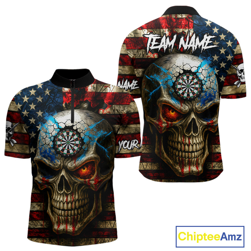 Personalized Vintage American Flag Skull Darts Shirt For Men, Patriotic Darts League Team Jersey TDM4708