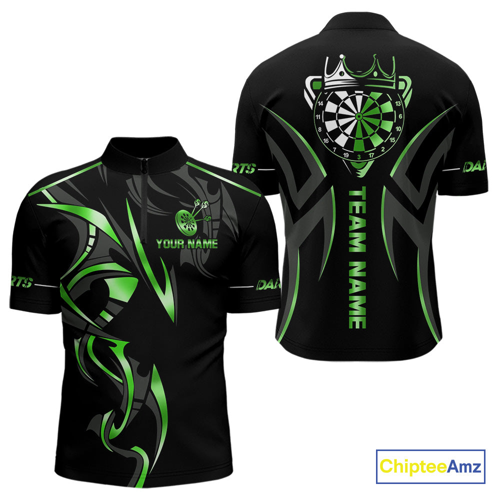 Black And Green Dartboard Crown Dart Shirts For Men Custom Dart Jersey Team Polo & Quarter Zip TDM4791