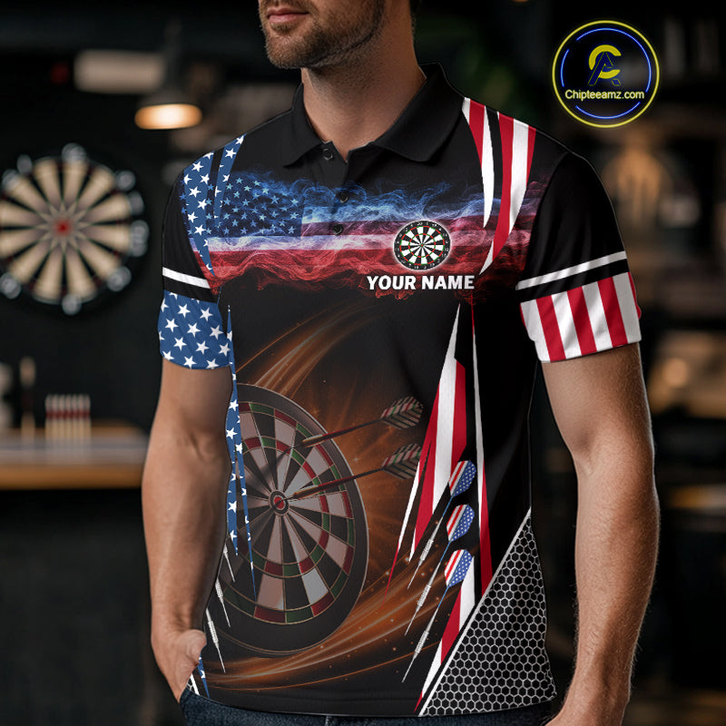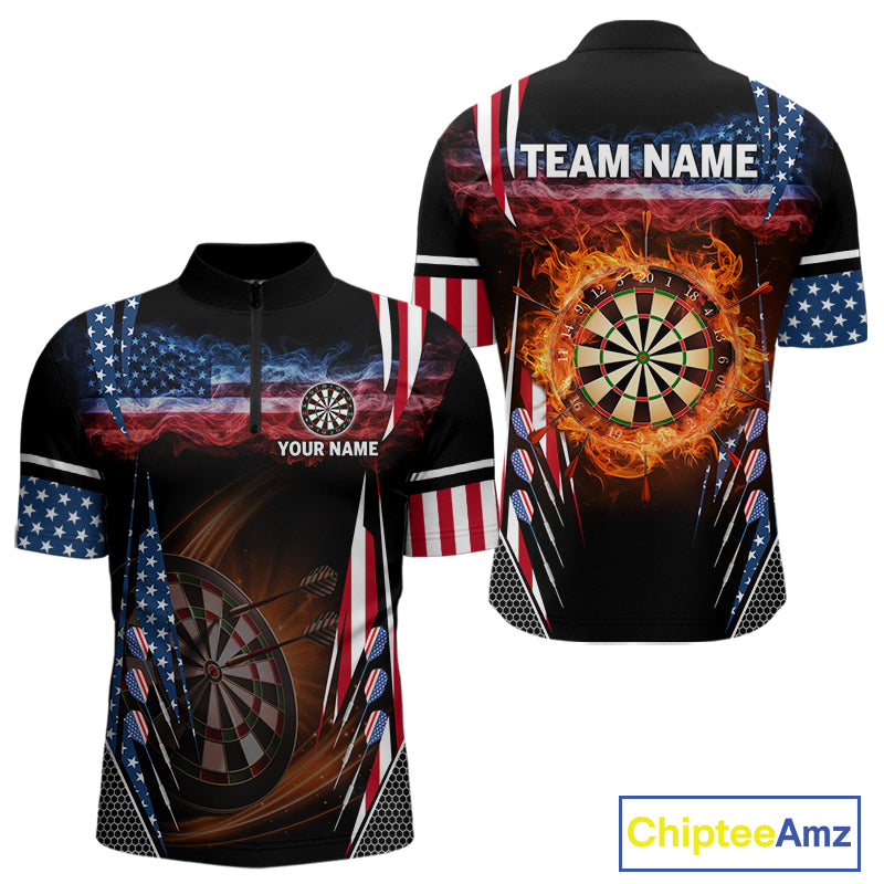 Personalized American Flag Dartboard Fire Flame Darts Shirt For Men, Patriotic Darts League Jersey TDM4796