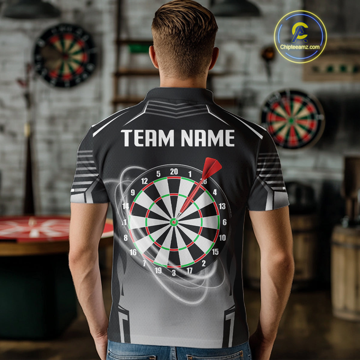 Black And White Dartboard Lights Custom Darts Polo & Quarter Zip For Men, 3D Darts Team Jersey TDM4802