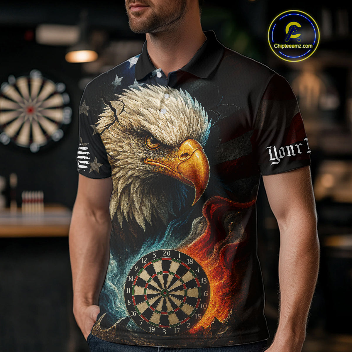 Personalized Eagle Flame Darts Shirt For Men Custom Patriotic American Flag Team Darts Jersey TDM4820