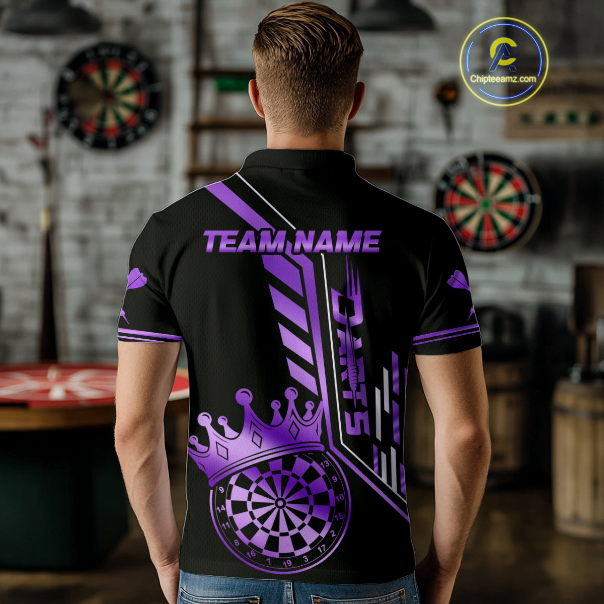 Black And Purple Funny Crown Darts Shirt Polo & 1/4 Zip For Men Custom Darts League Team Jersey TDM4822