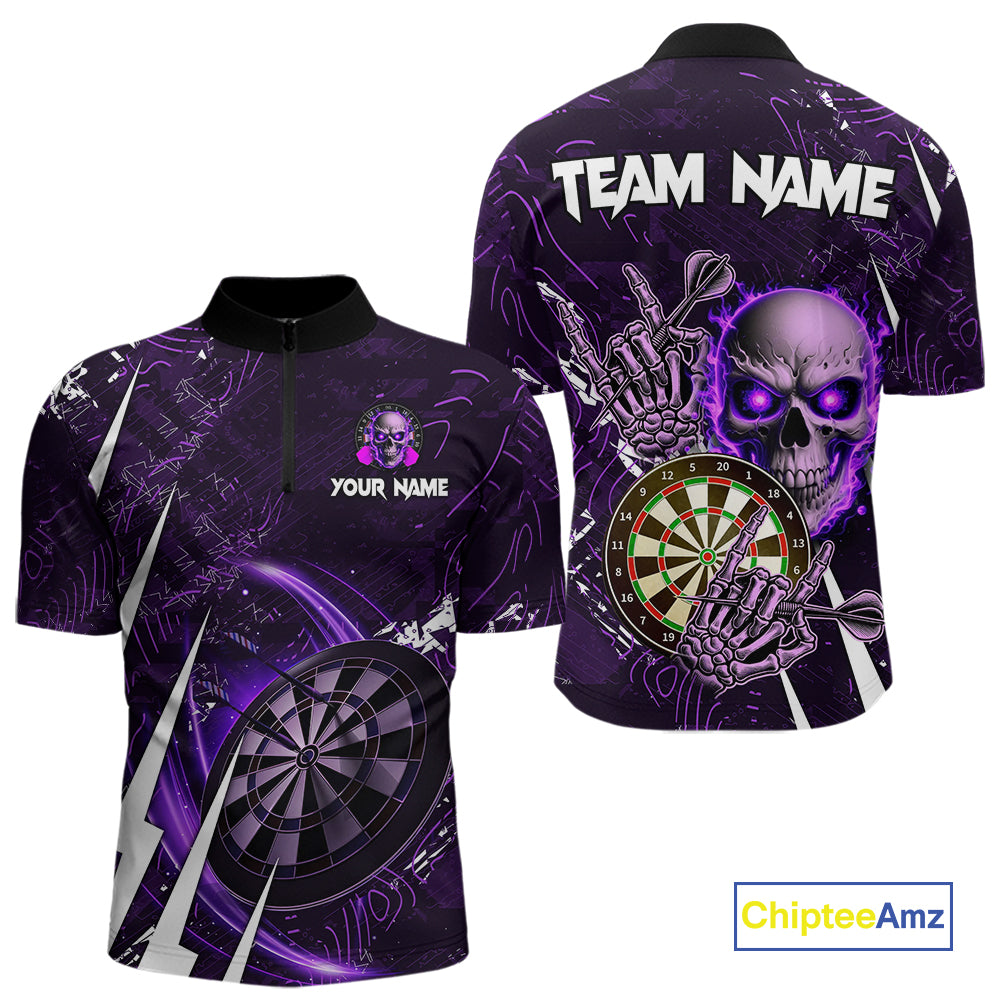 Purple 3D Skull Darts Polo & 1/4 Zip For Men Custom Darts League Team Jersey, Best Darts Gifts TDM4830