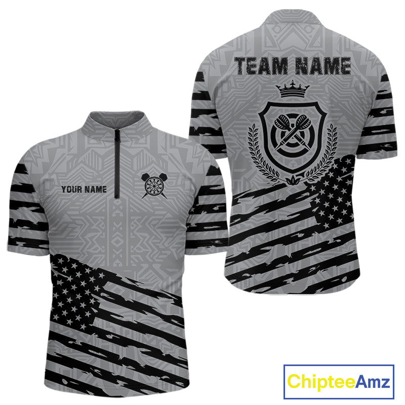 Personalized Grey US Flag Darts Shirt For Men Custom Darts Jersey, Darts Tournament Team Shirts TDM4905