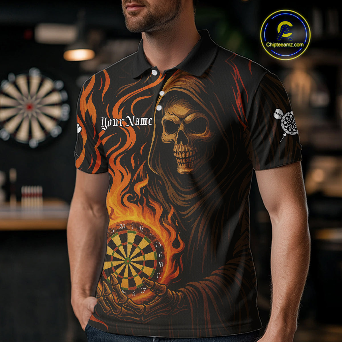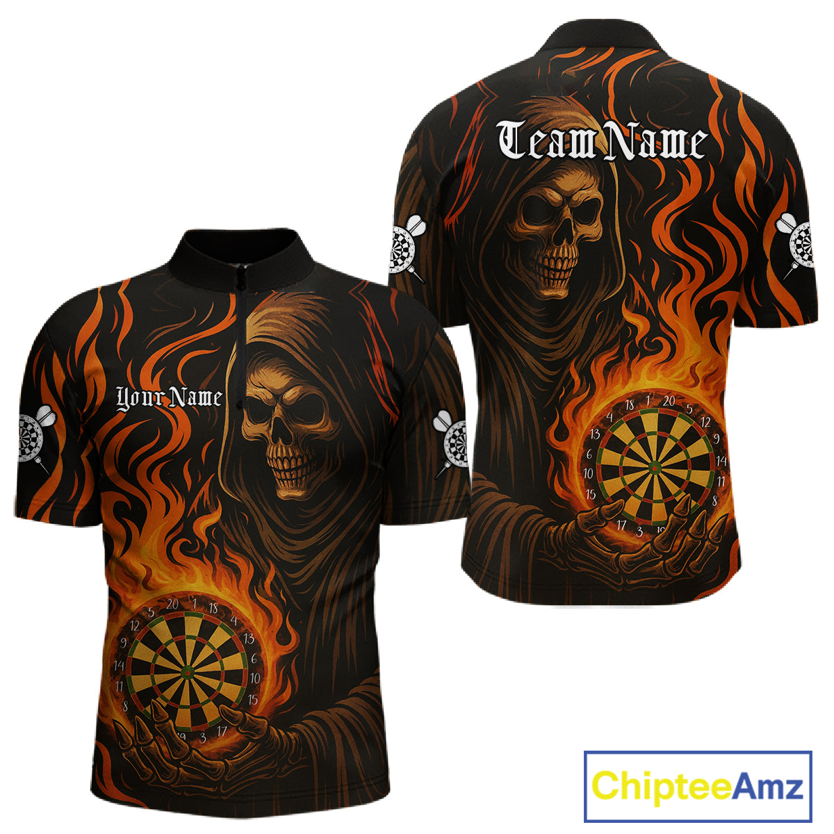 Personalized Flaming Grim Reaper Darts Shirt For Men Custom Dart Jersey Funny Halloween Dart Gift TDM4909