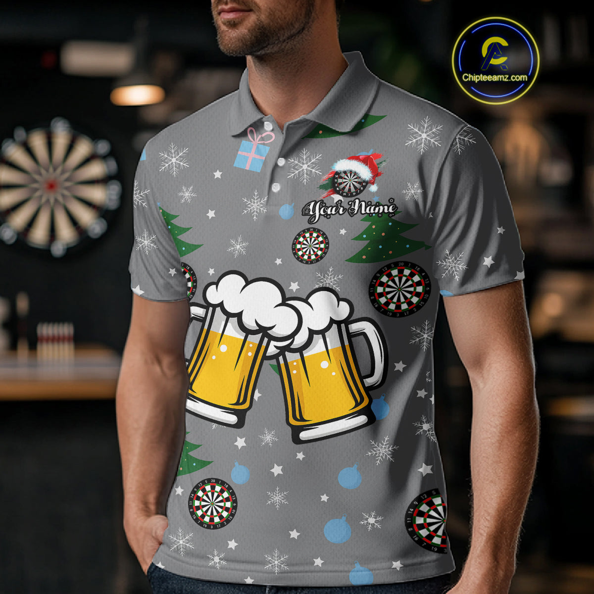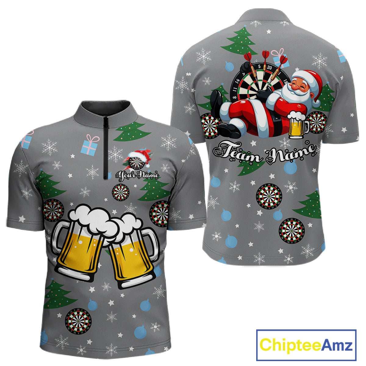 Funny Santa And Beer Christmas Darts Polo & 1/4 Zip For Men Custom Xmas Darts Shirt, Darts Gift TDM4911