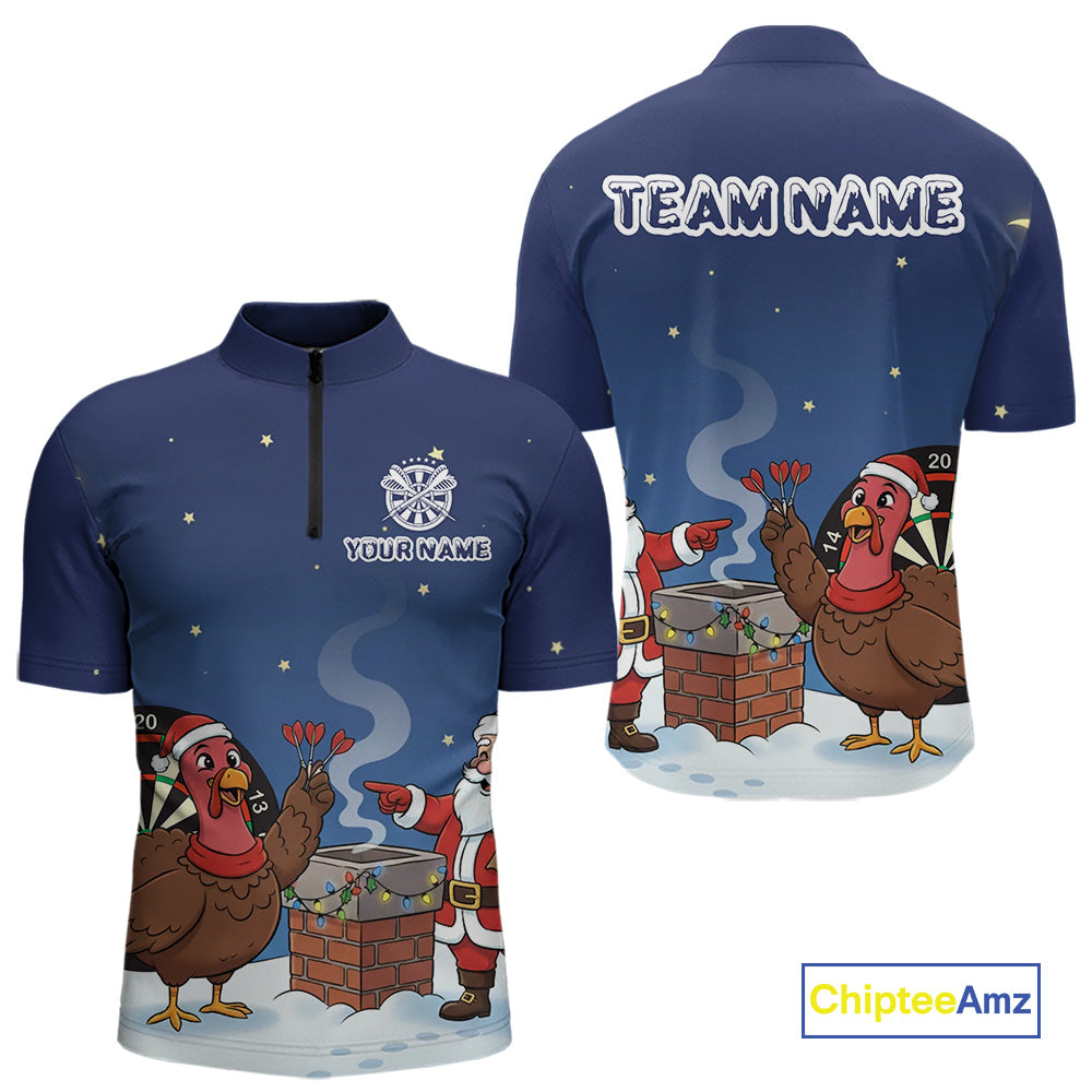 Funny Santa And Turkey Custom Darts Shirt For Men, Christmas Darts Shirt Gift For Darts Lover TDM4912