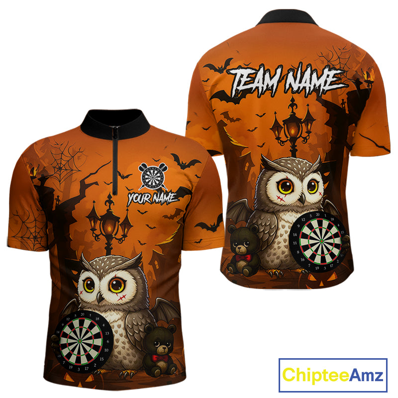 Personalized Orange Funny Owl Halloween Darts Shirt For Men Custom Pumpkin Darts Jersey TDM4929