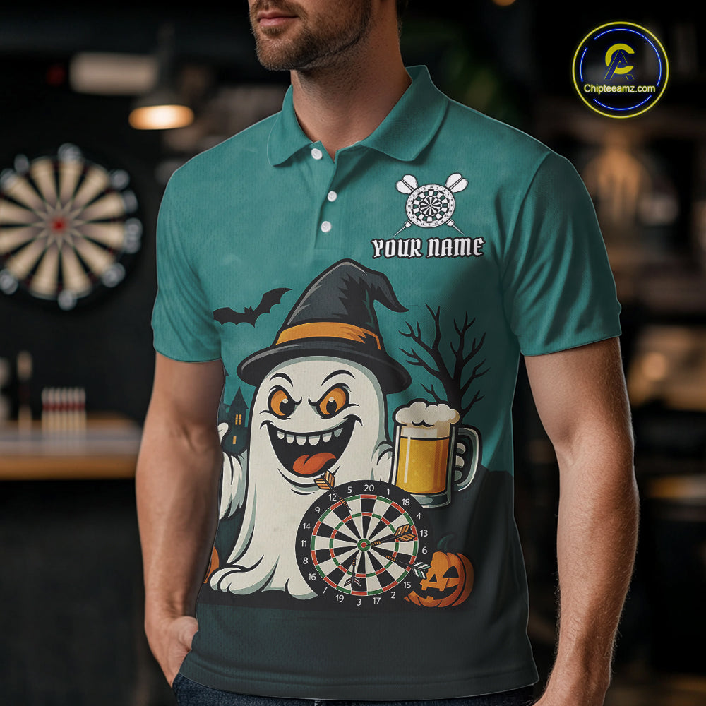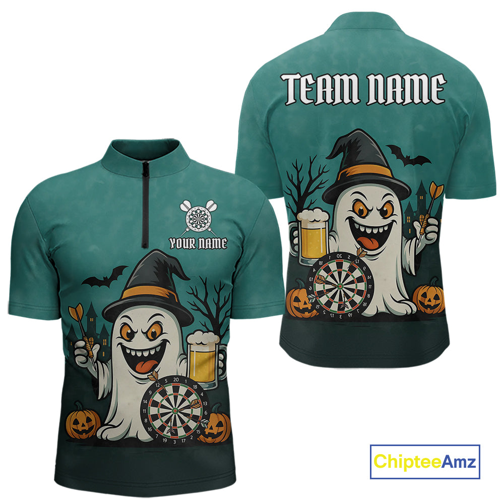 Custom Darts Shirt Halloween Ghostly Beer Polo & 1/4 Zip For Men, Funny Darts Jersey, Darts Gifts TDM4946
