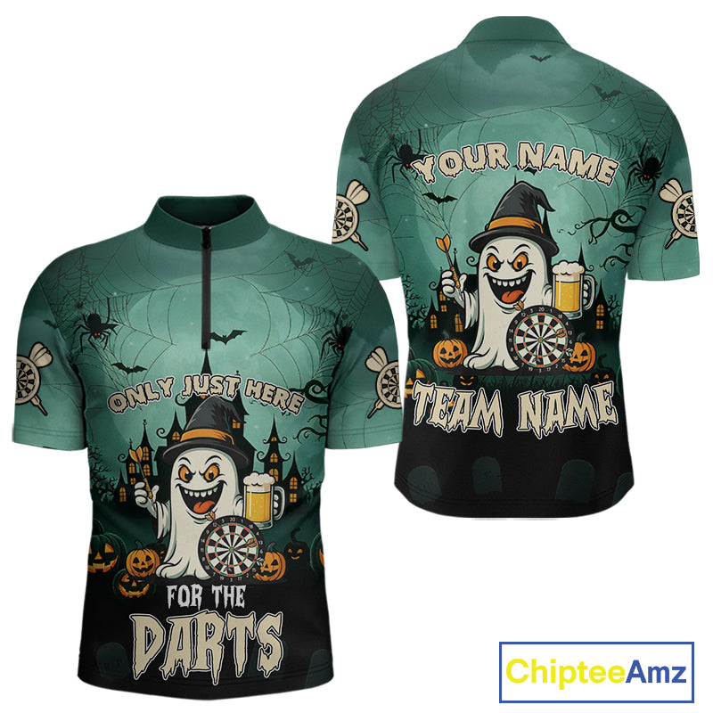 Only Just Here For The Darts Custom Halloween Darts Shirt For Men, Funny Ghostly Darts Team Jersey TDM4951