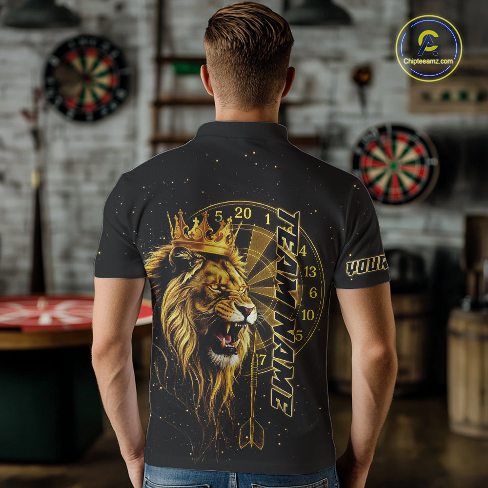 Black And Golden Funny Lion Crown Darts Shirt For Men Custom Darts League Jersey Polo & 1/4 Zip TDM5000