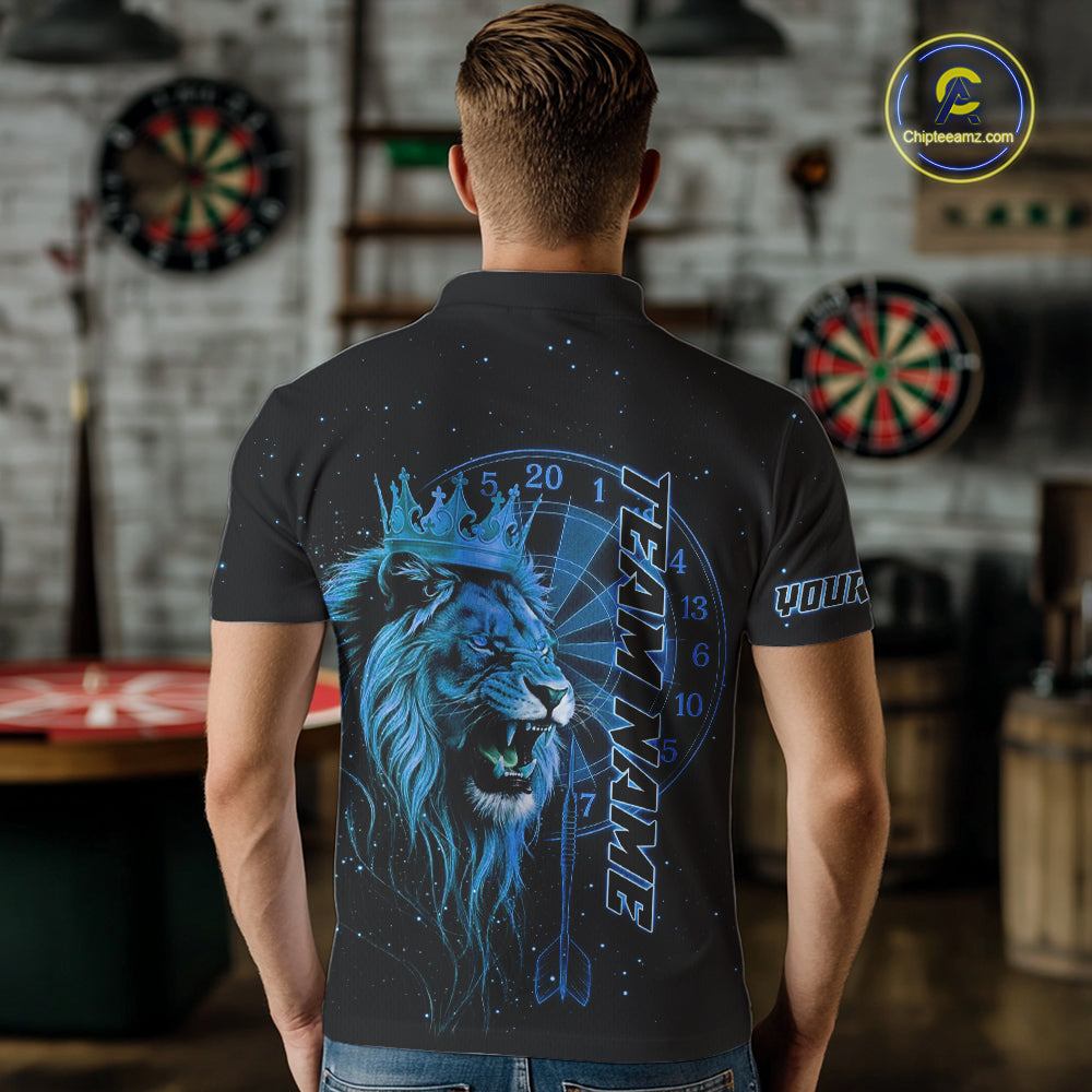 Black And Blue Funny Lion Crown Darts Shirt For Men Custom Darts League Jersey Polo & 1/4 Zip TDM5001
