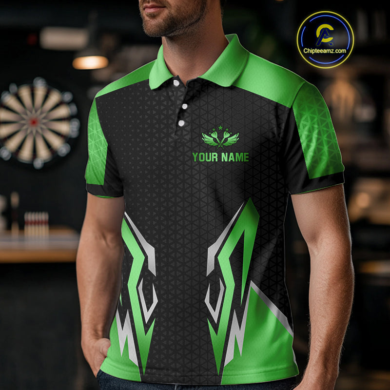 Black And Green Funny Crown Darts Shirt For Men Custom Darts Jerseys Team Polo & Quarter Zip TDM5017