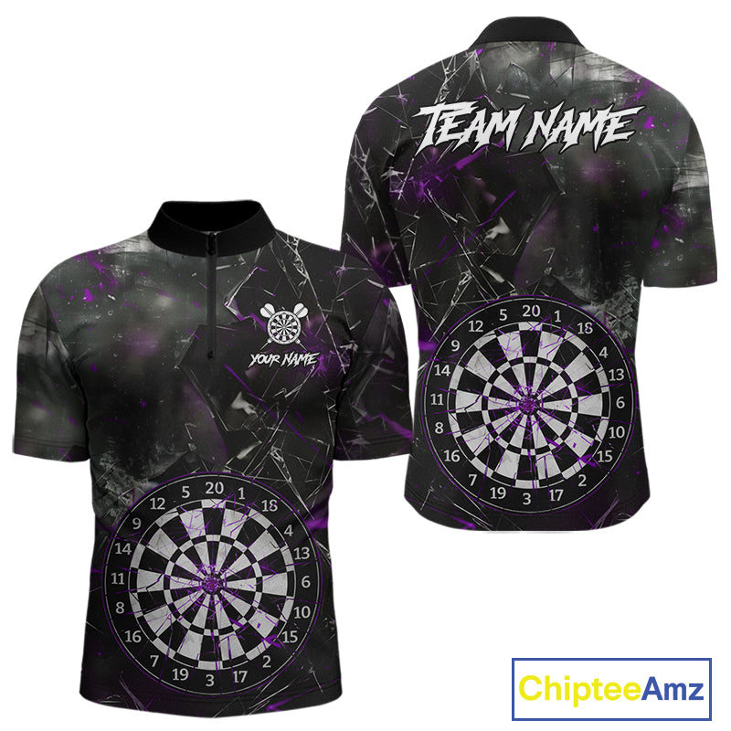 Personalized Purple Break Glass Darts Shirt For Men Custom Darts Team Jersey Polo & 1/4 Zip TDM5101