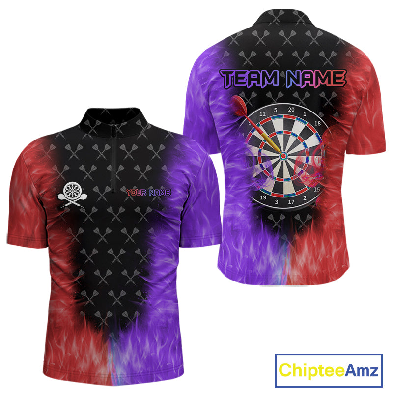 Red And Purple Flame Mens Dart Shirts Custom Dart Jersey Polo & 1/4 Zip, Gifts For Dart Players TDM5146