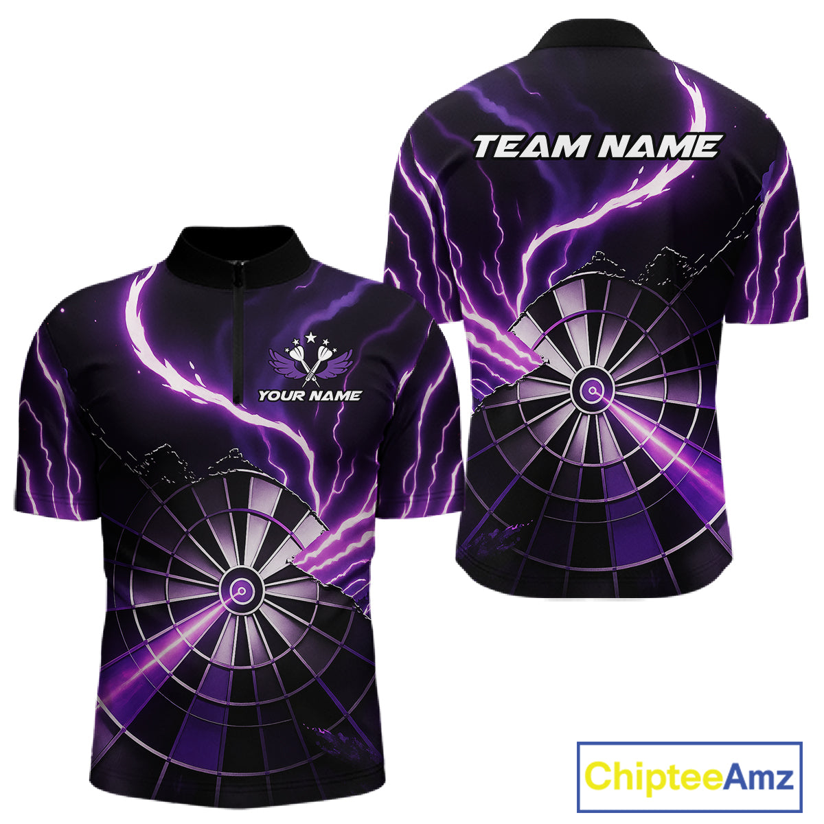 Personalized Purple Lightning Mens Dart Shirts Custom Glowing Darts Team Jersey Polo & 1/4 Zip TDM5159