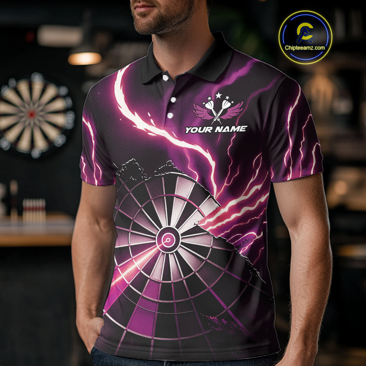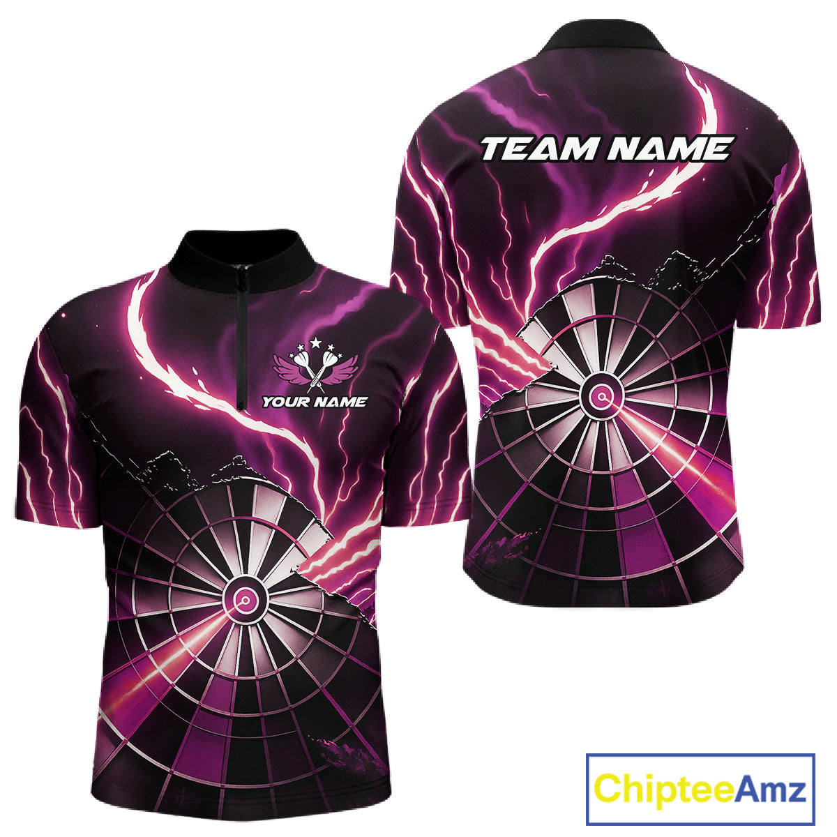 Personalized Pink Lightning Mens Dart Shirts Custom Glowing Darts Team Jersey Polo & 1/4 Zip TDM5160