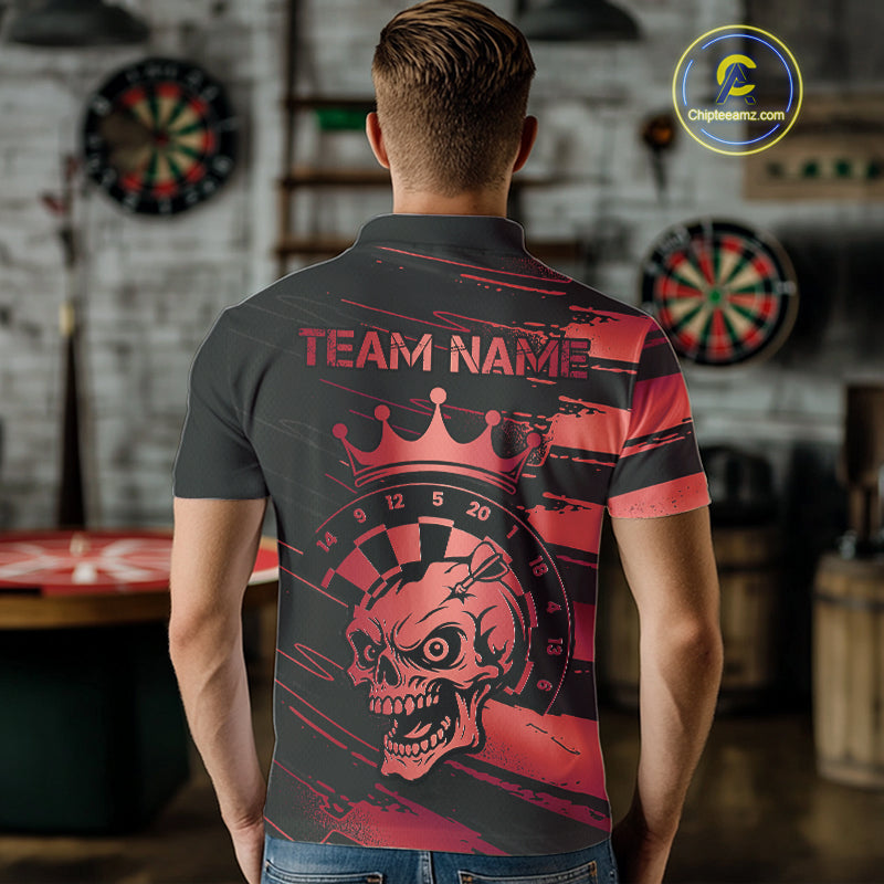 Black And Red Funny Skull Crown Darts Shirt For Men Custom Dart Jerseys Team Polo & Quarter Zip TDM5169