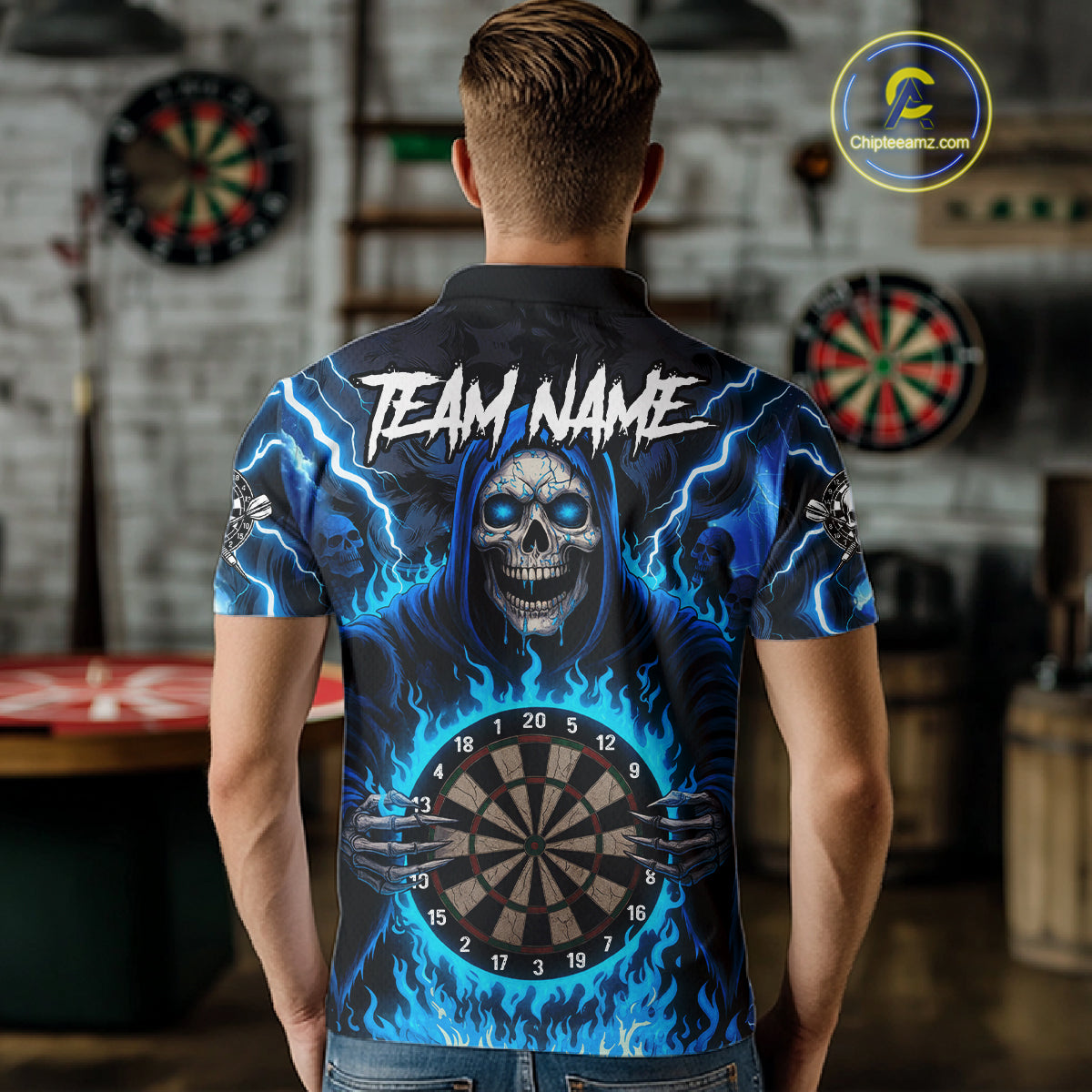 Blue Grim Reaper Thunder Lightning Mens Dart Shirts Custom Flame Dart Jerseys Team Polo & 1/4 Zip TDM5174