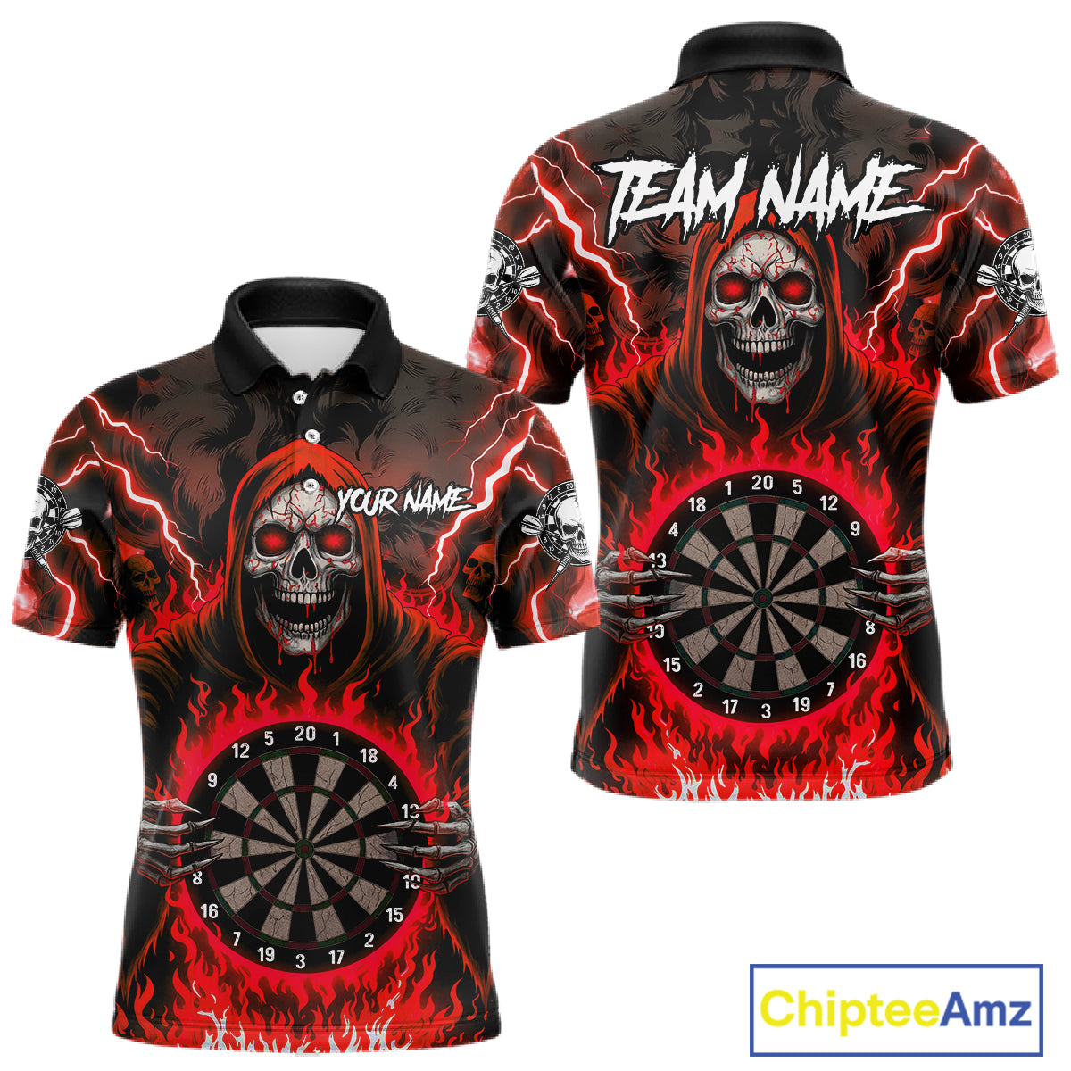 Red Grim Reaper Thunder Lightning Mens Dart Shirts Custom Flame Dart Jerseys Team Polo & 1/4 Zip TDM5175