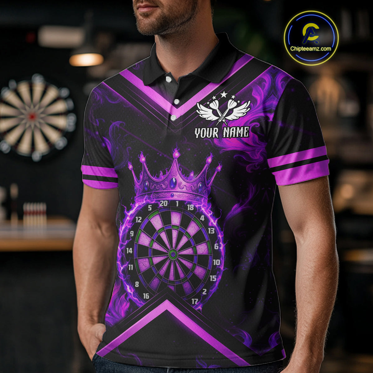 Black And Purple Dartboard Crown Darts Shirt For Men Custom Dart Jerseys Team Polo & 1/4 Zip TDM5279