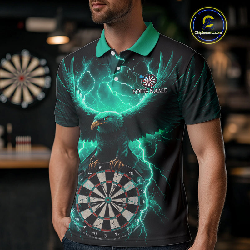 Turquoise Hawkeye Thunder Lightning Darts Shirt For Men Custom Darts Jersey Team Polo & 1/4 Zip TDM5304