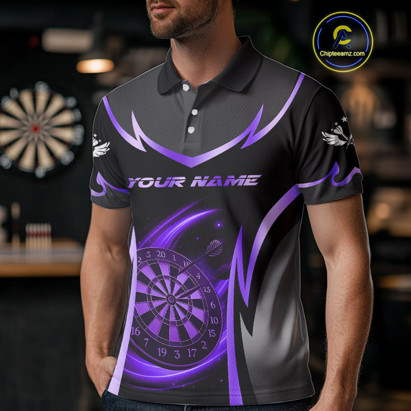 Purple Dartboard Lightning Darts Polo & 1/4 Zip Custom Darts Shirt For Men, Darts Team Jersey TDM5335