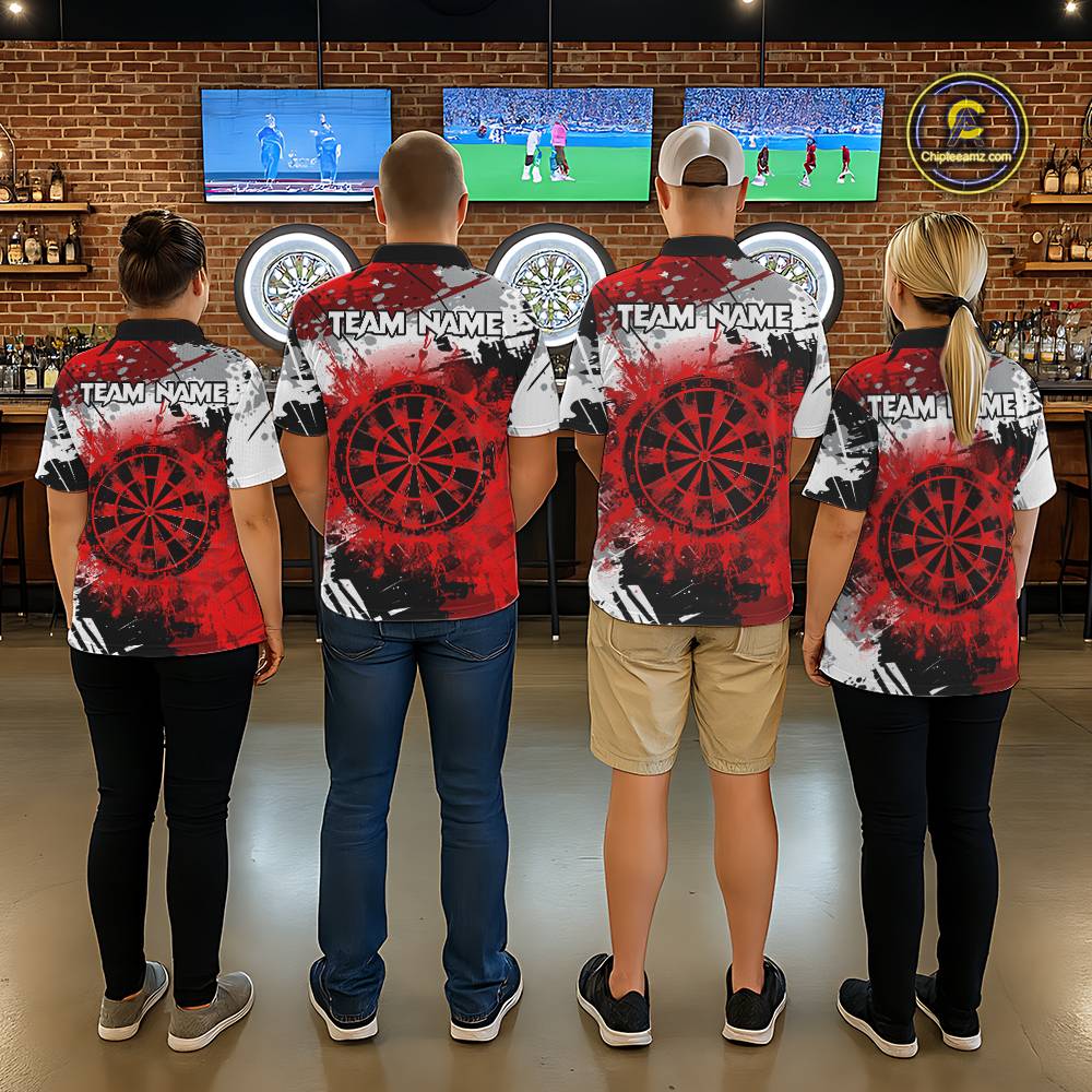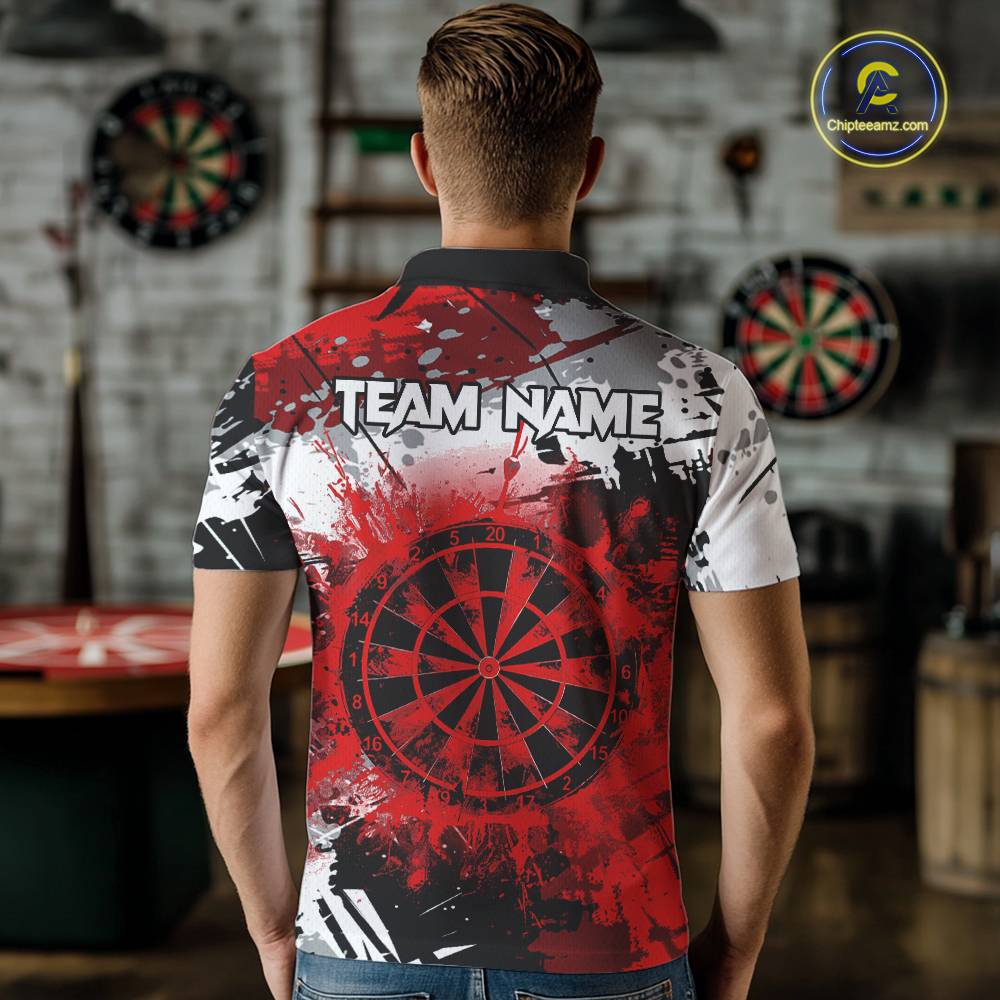 Red Grunge Paint Splash Dart Shirts For Men Custom Darts Jersey Team Polo & Quarter Zip TDM5352