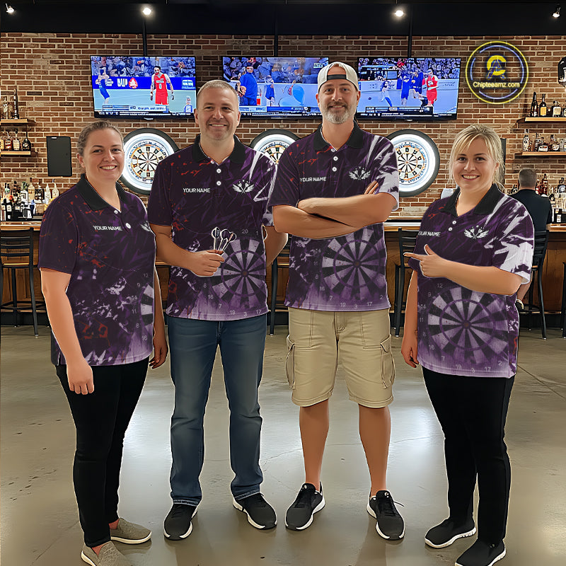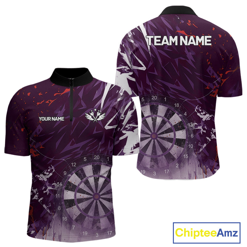Purple Geometric Darts Shirt With Pocket Option Custom Men's Darts Jersey TDM5362