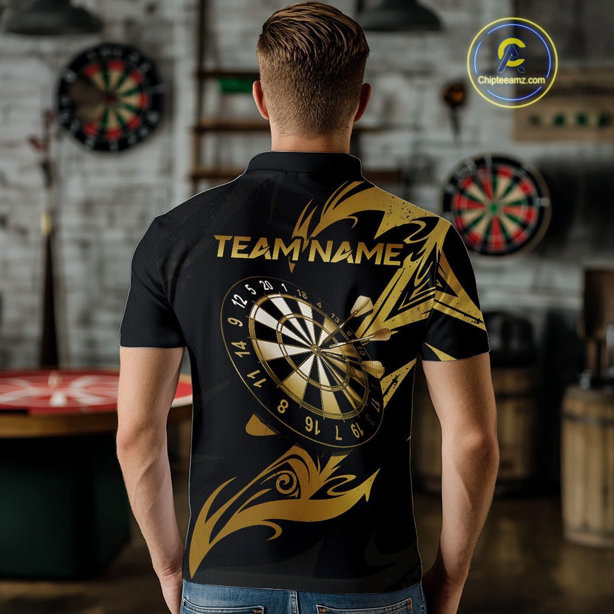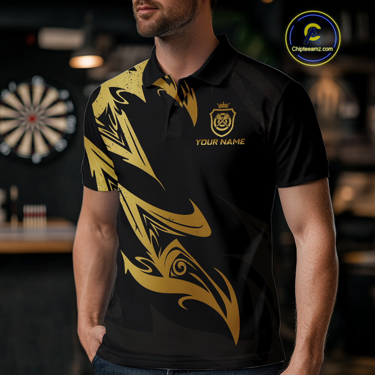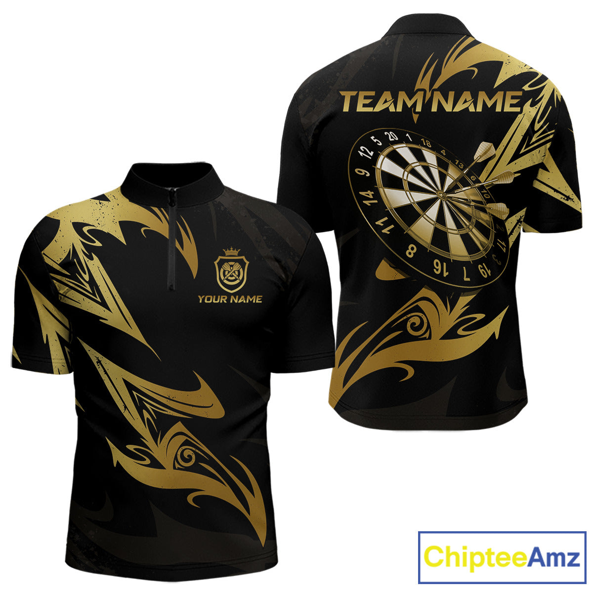 Black And Gold Dartboard Tribal Darts Polo & 1/4 Zip Custom Darts Shirt For Men, Darts Team Jersey TDM5366