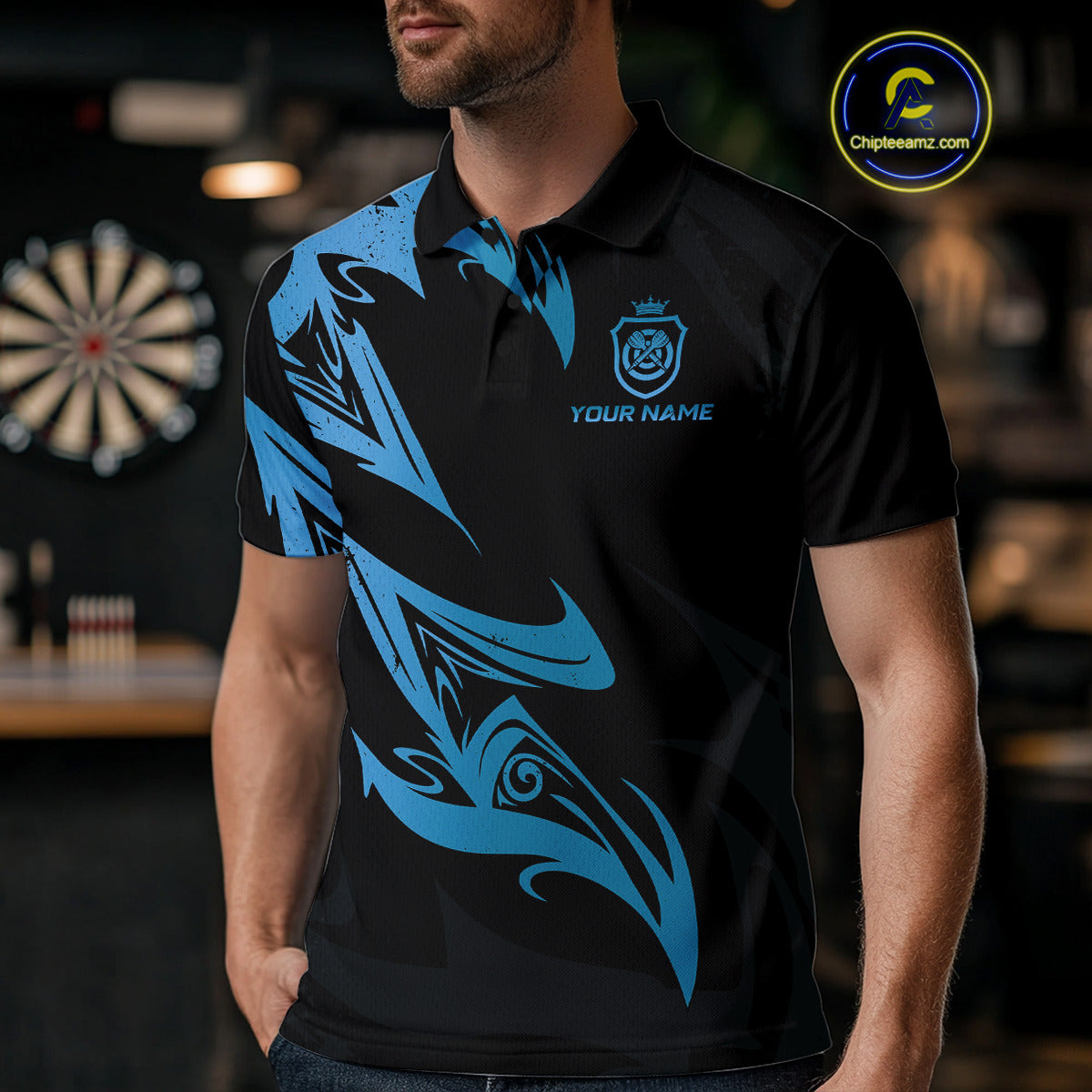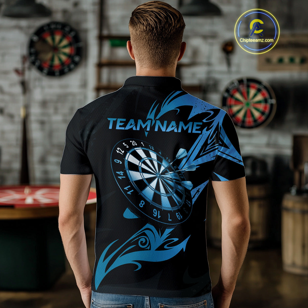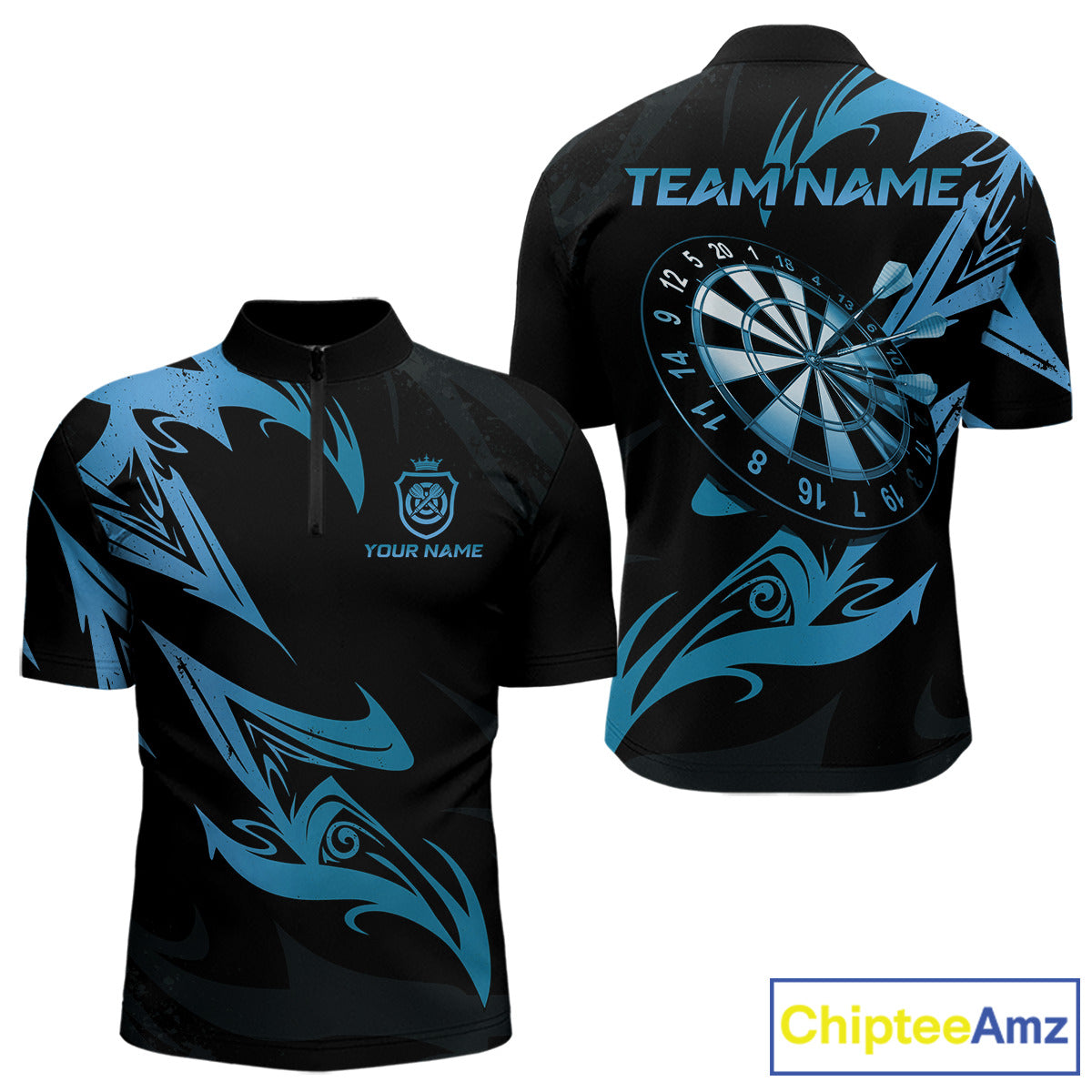 Black And Blue Dartboard Tribal Darts Polo & 1/4 Zip Custom Darts Shirt For Men, Darts Jersey TDM5368
