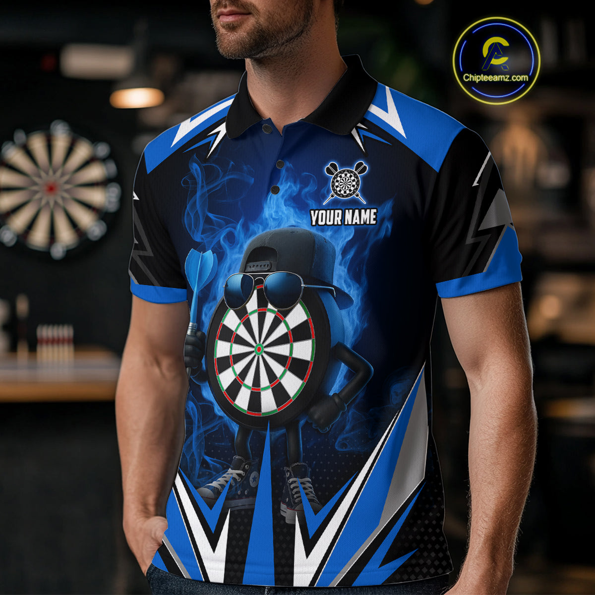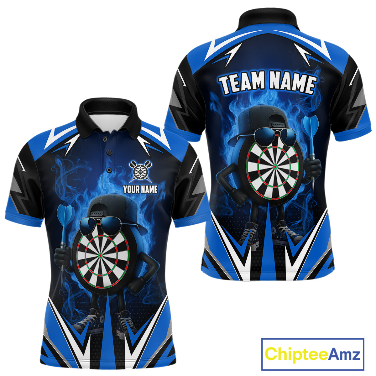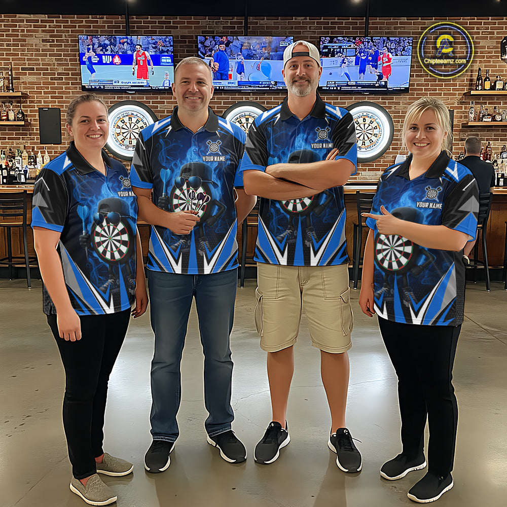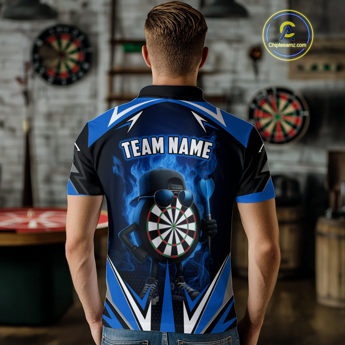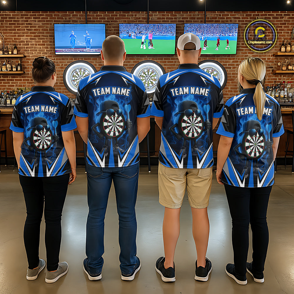 Funny Dartboard Blue Flaming Darts Shirt For Men Custom Darts Jersey Team Polo & Quarter Zip TDM5386