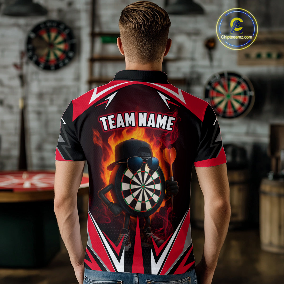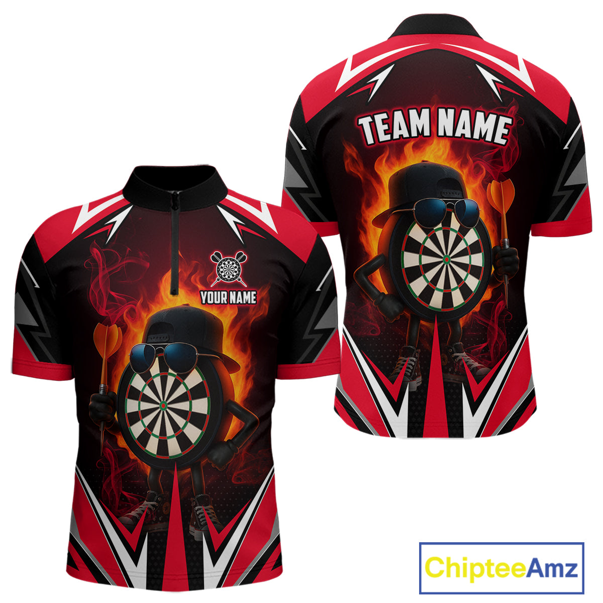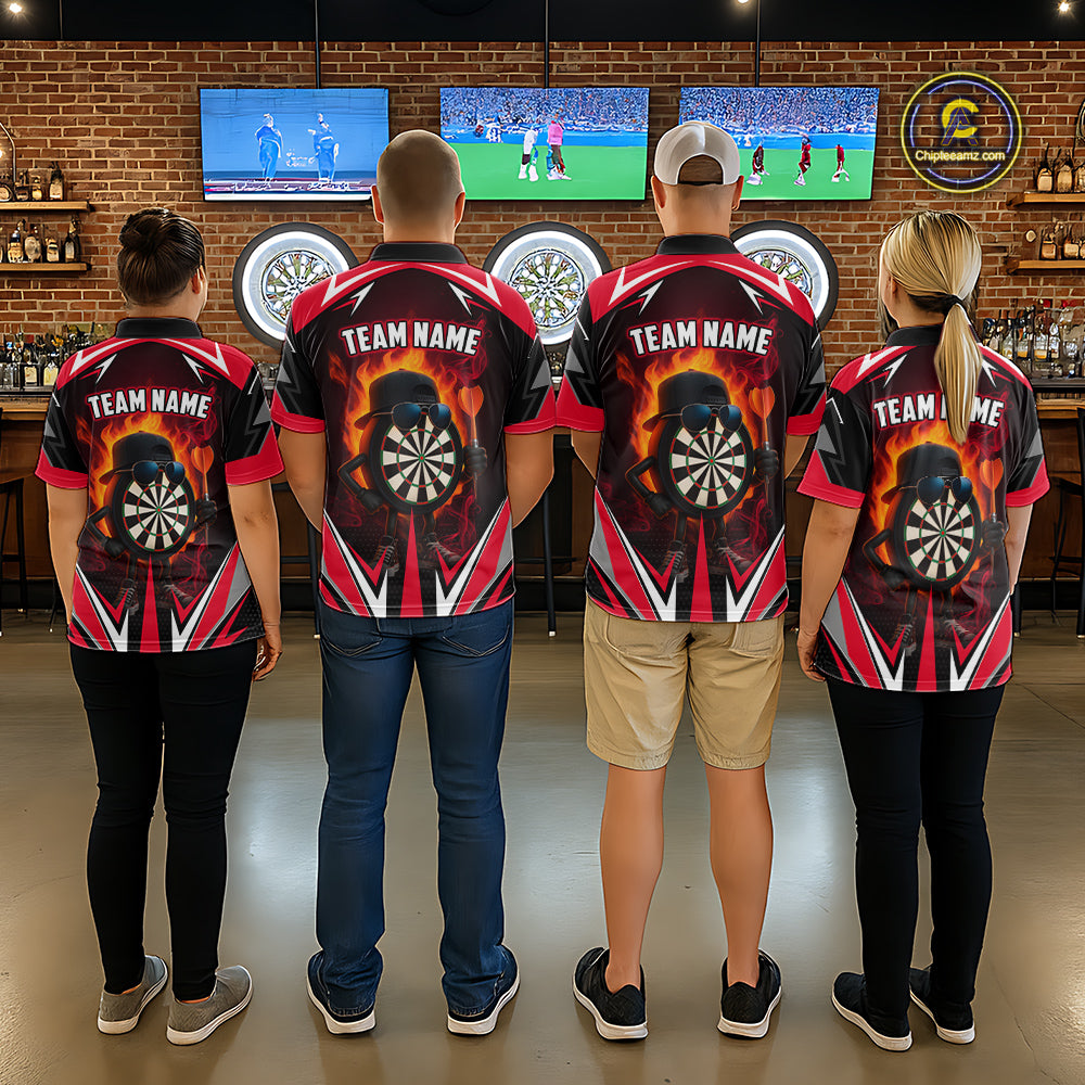Funny Dartboard Red Flaming Darts Shirt For Men Custom Darts League Jersey Team Polo & Quarter Zip TDM5387