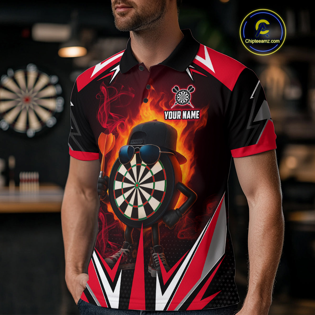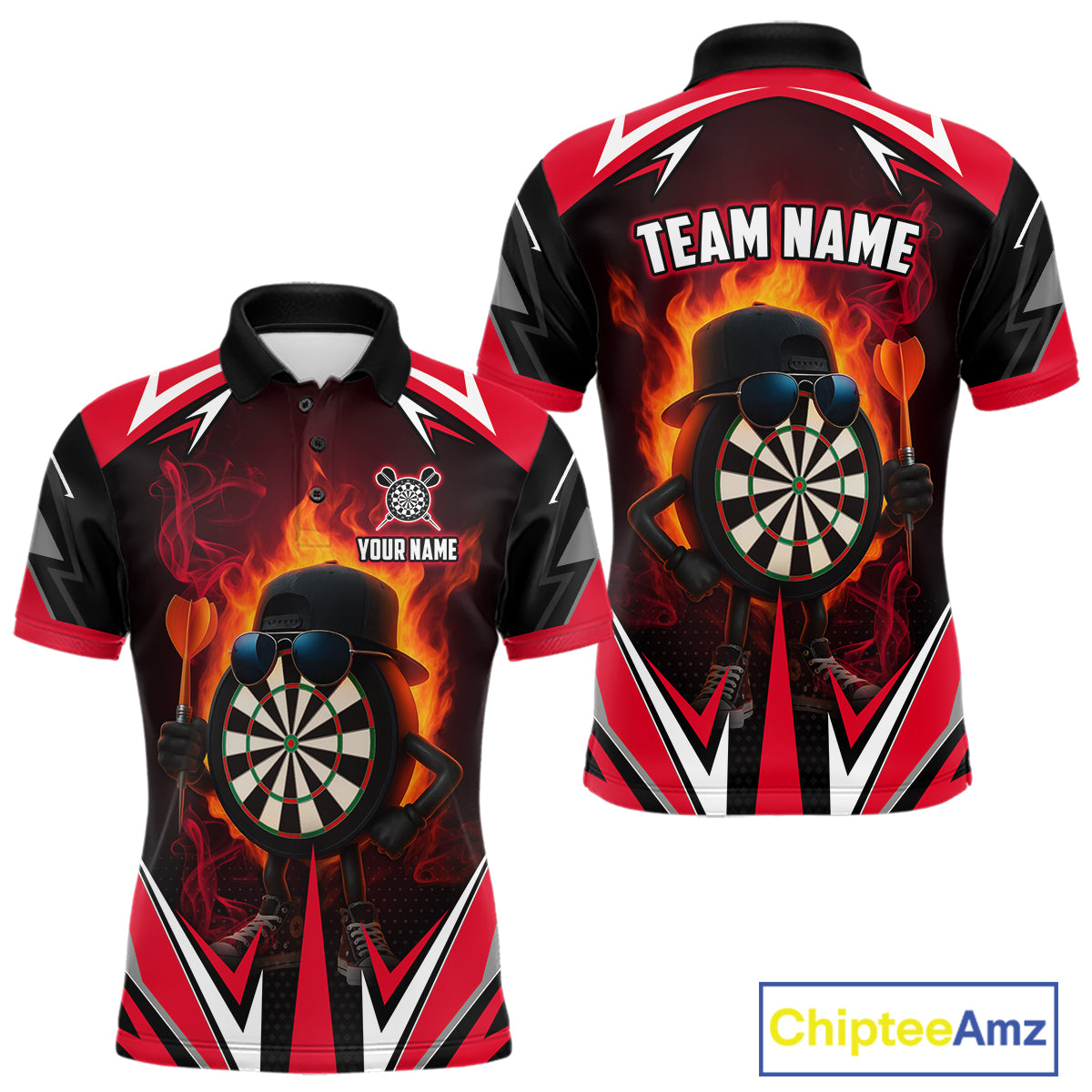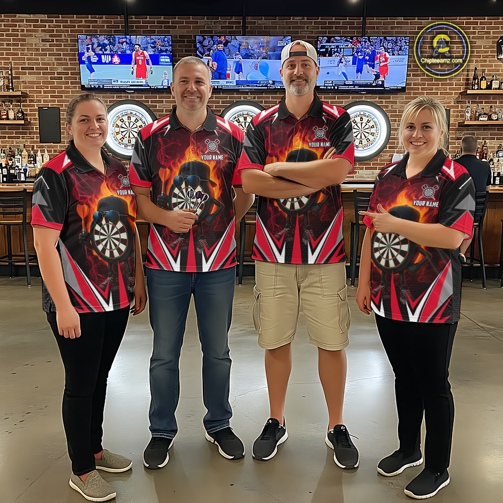 Funny Dartboard Red Flaming Darts Shirt For Men Custom Darts League Jersey Team Polo & Quarter Zip TDM5387