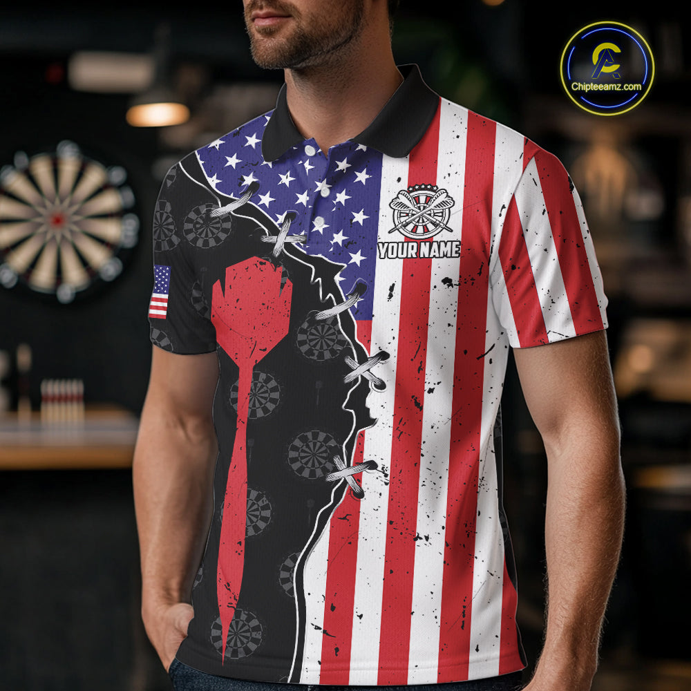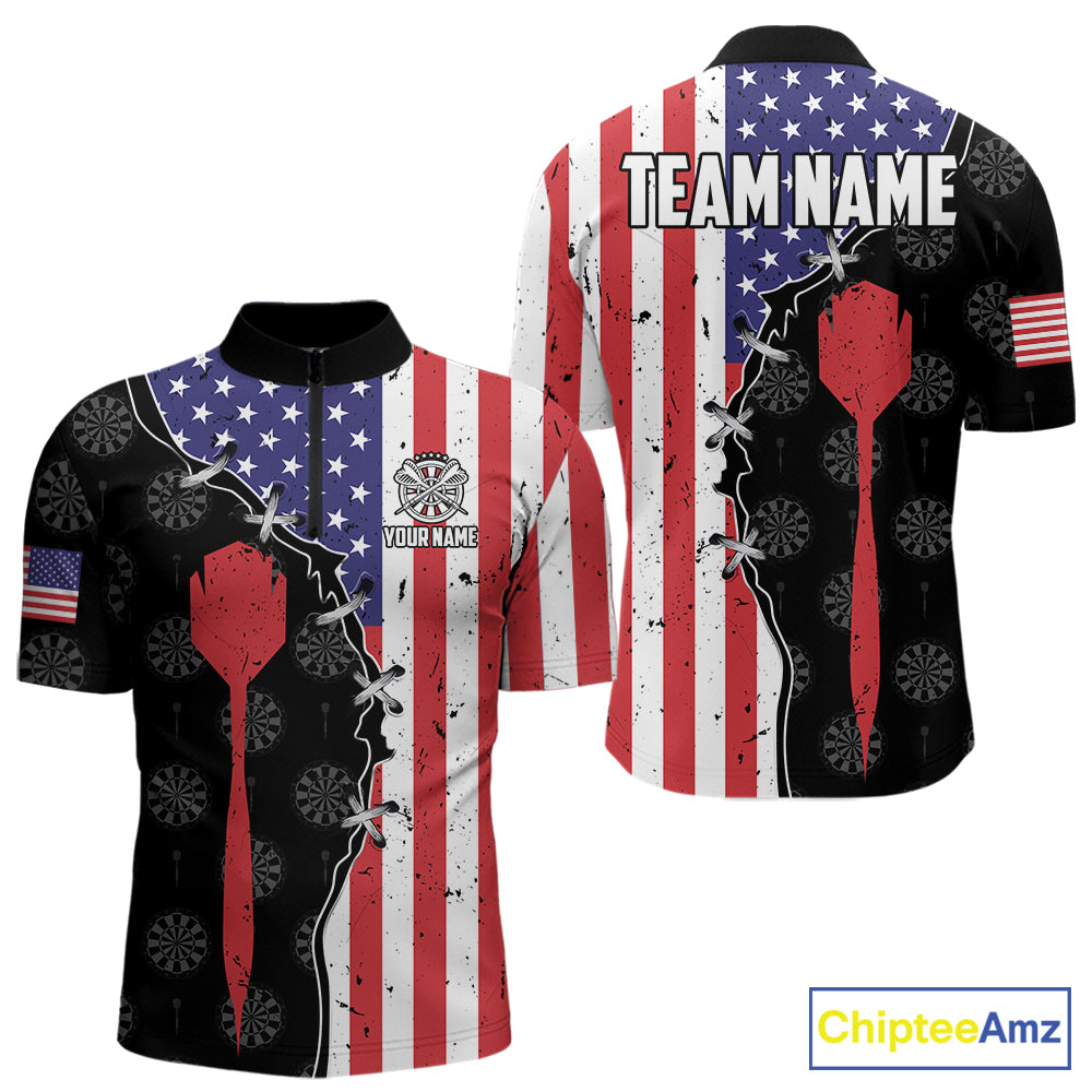 Retro American Flag Patriotic Darts Shirt For Men Custom Darts Team Jersey Polo & Quarter Zip TDM5388