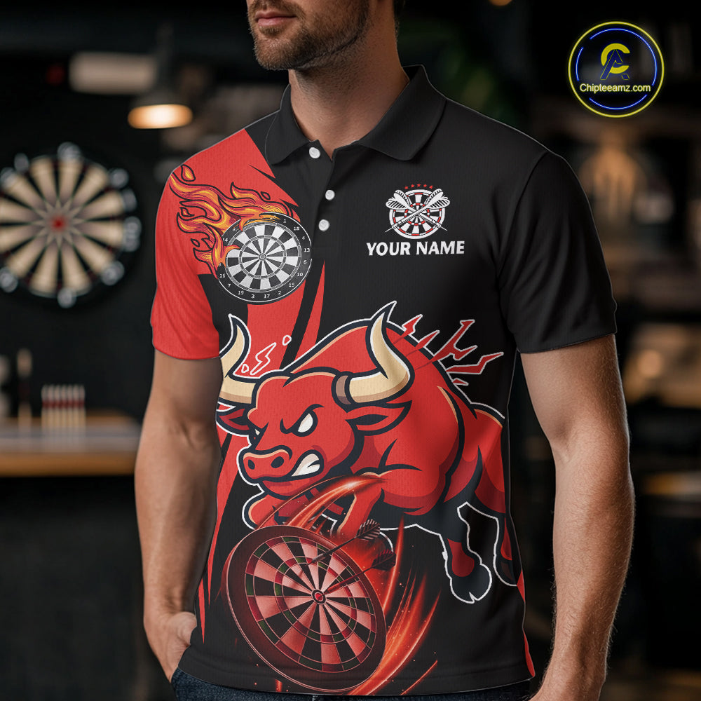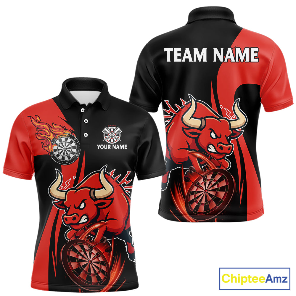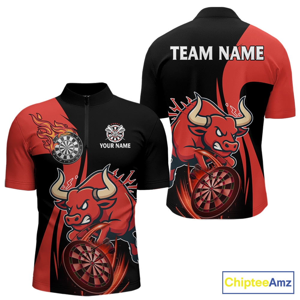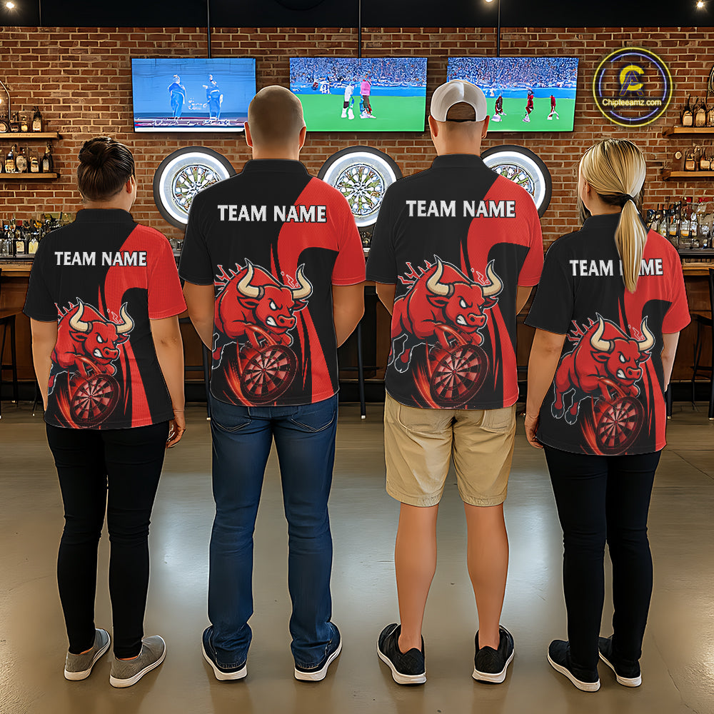 Black And Red Custom Bull Darts Shirt For Men, Personalized Darts Jersey Team Polo & 1/4 Zip TDM5389
