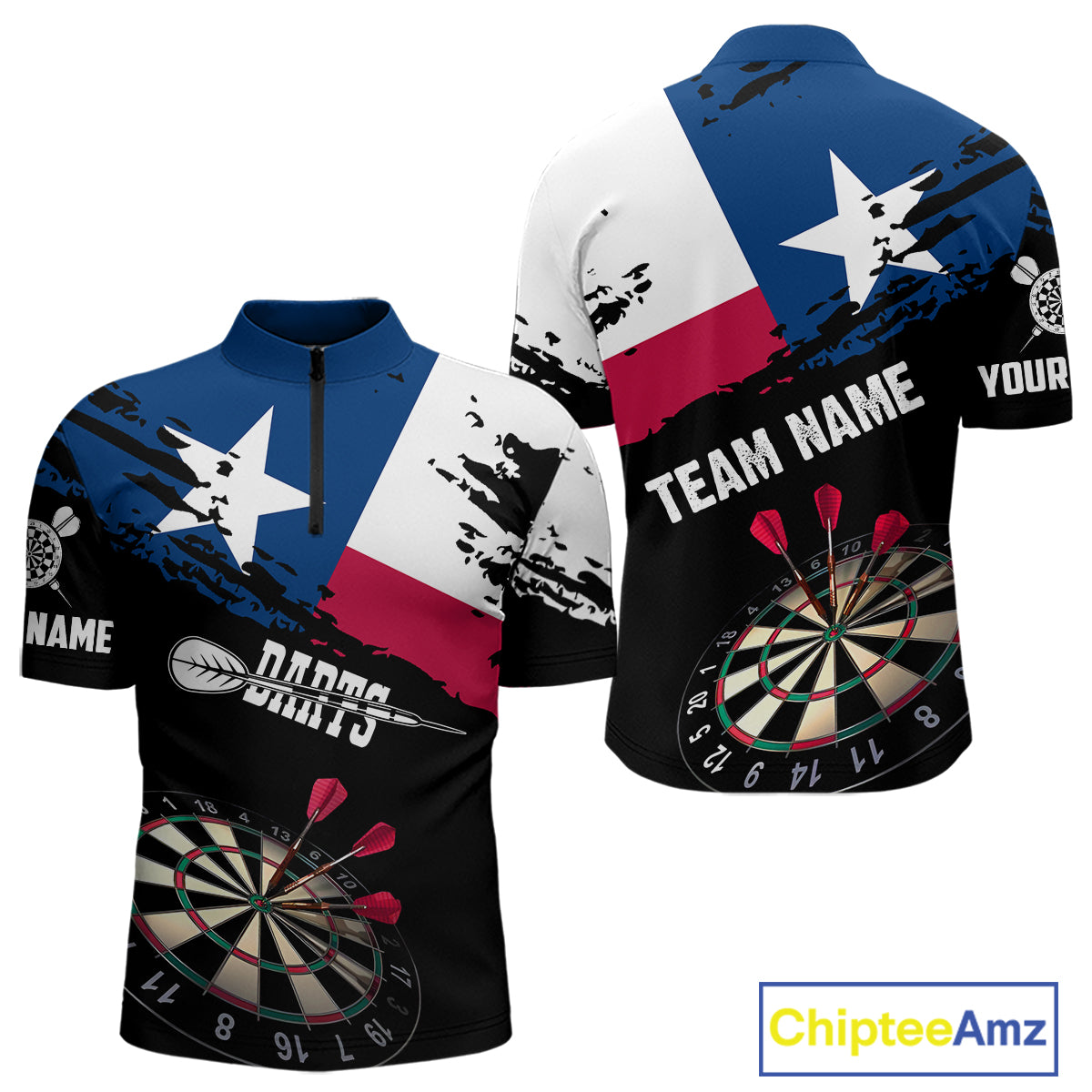 Personalized Grunge Texas Flag Mens Darts Shirt Custom Texas Darts Jersey Team Polo & 1/4 Zip TDM5415