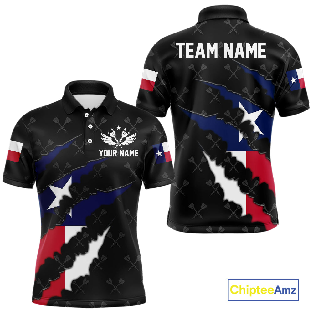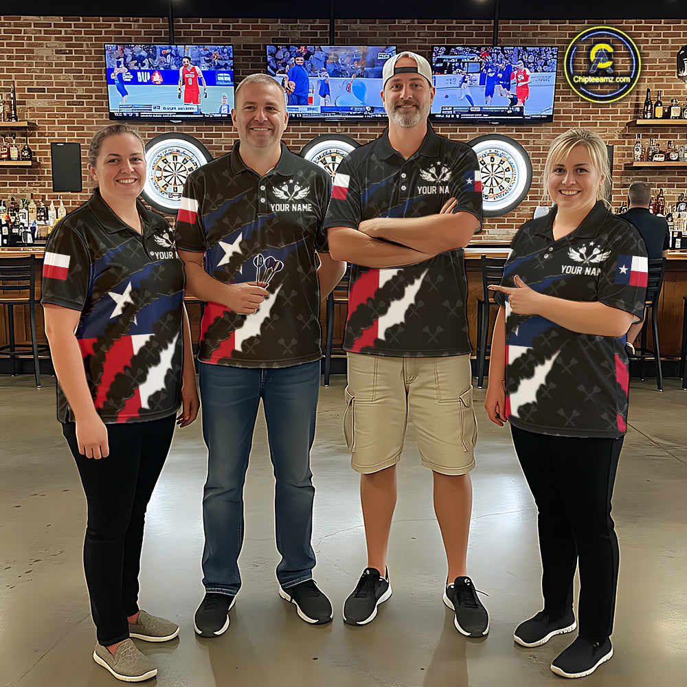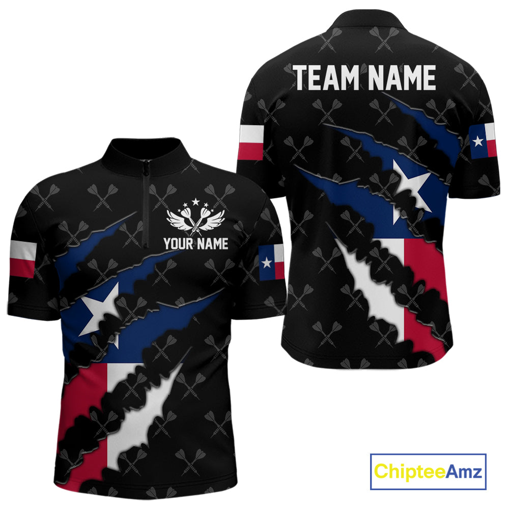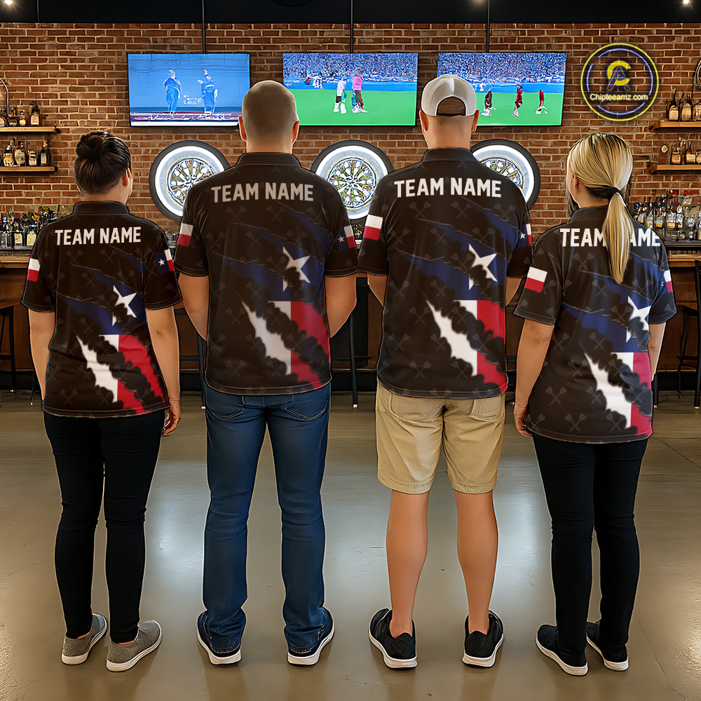 Personalized Texas Flag Darts Pattern Polo & 1/4 Zip For Men Custom Texas Darts Team Jerseys TDM5418