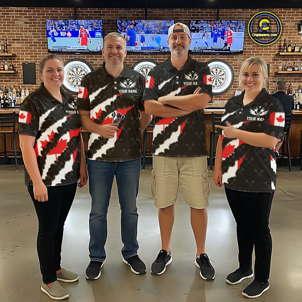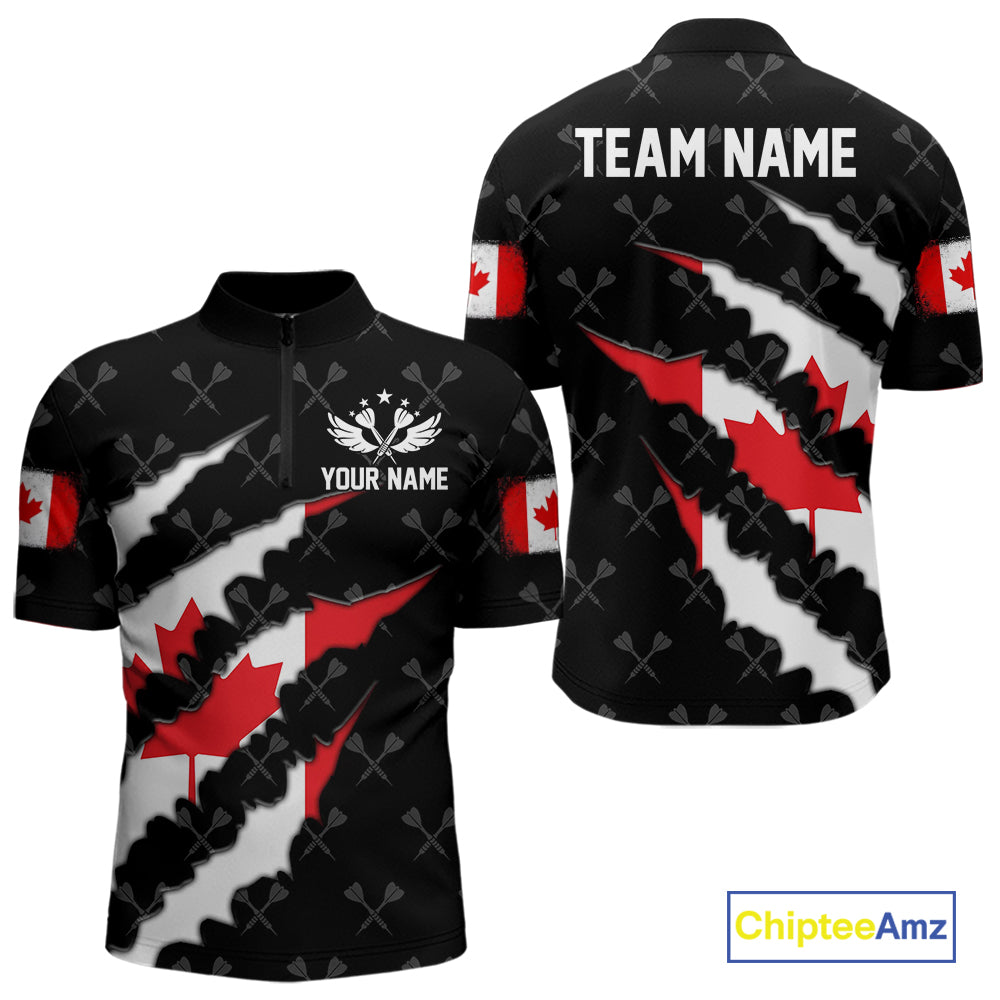 Personalized Canada Flag Darts Pattern Polo & 1/4 Zip For Men Custom Canadian Darts Team Jerseys TDM5419