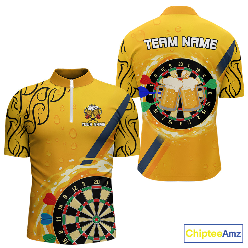 Personalized Funny Beer Tribal Darts Shirt For Men Custom Drinking Dart Team Jersey Polo & 1/4 Zip TDM5434