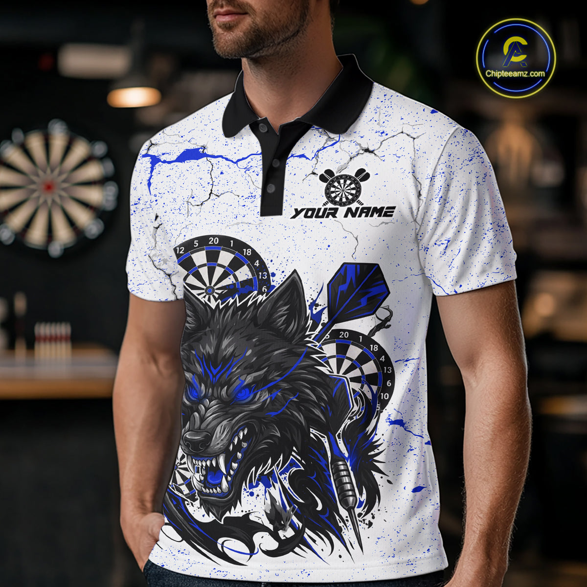 White Grunge Wolf Dart Shirt & Pocket Option Custom Men'S Dart Jersey |Blue TDM5441