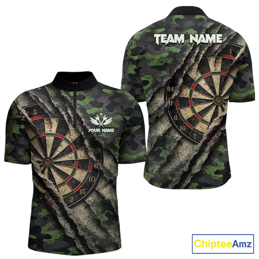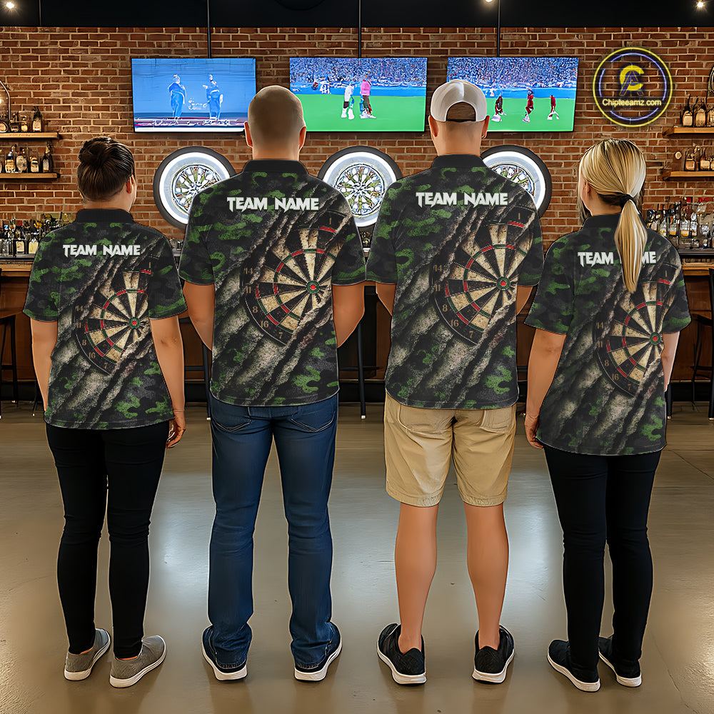 Green Retro Grunge Camo Darts Shirt For Men Custom Darts Jersey Team Polo & Quarter Zip Uniform TDM5450