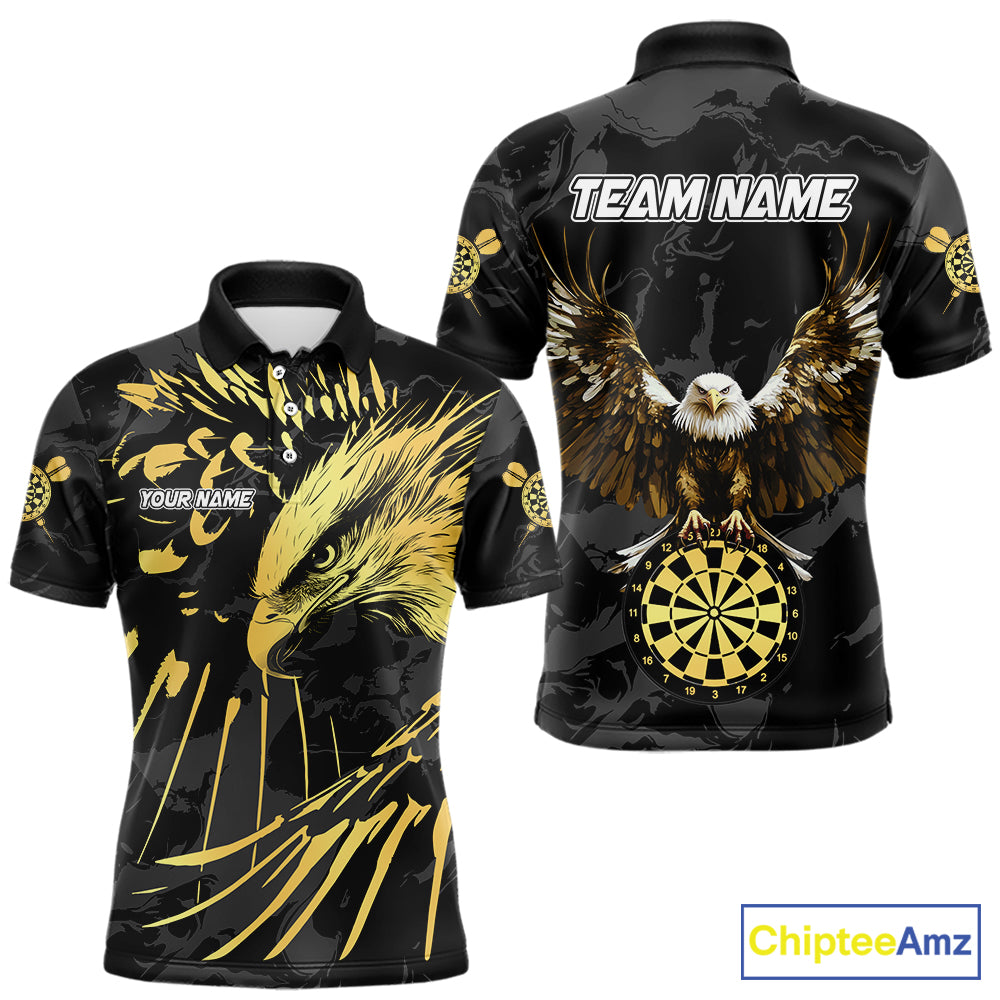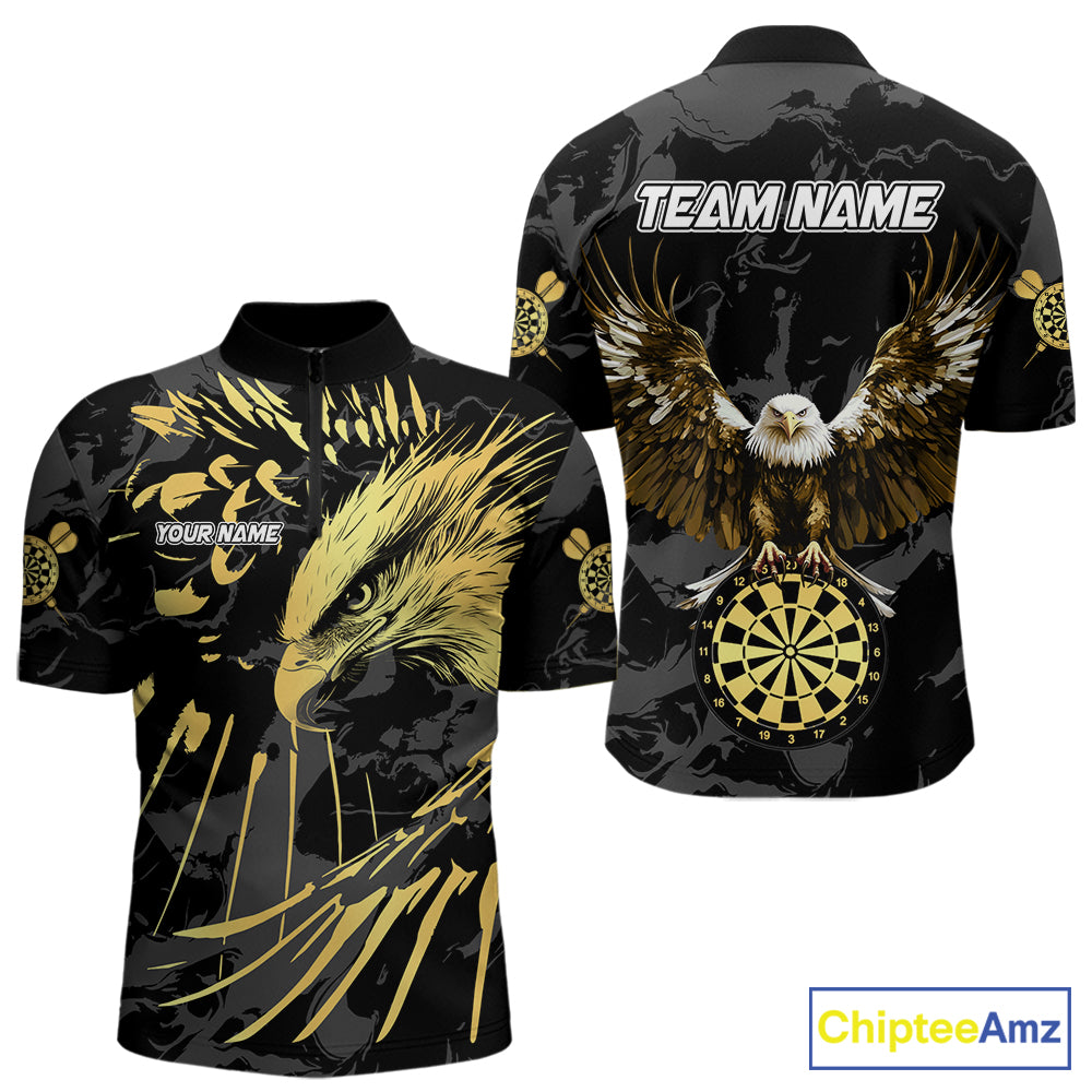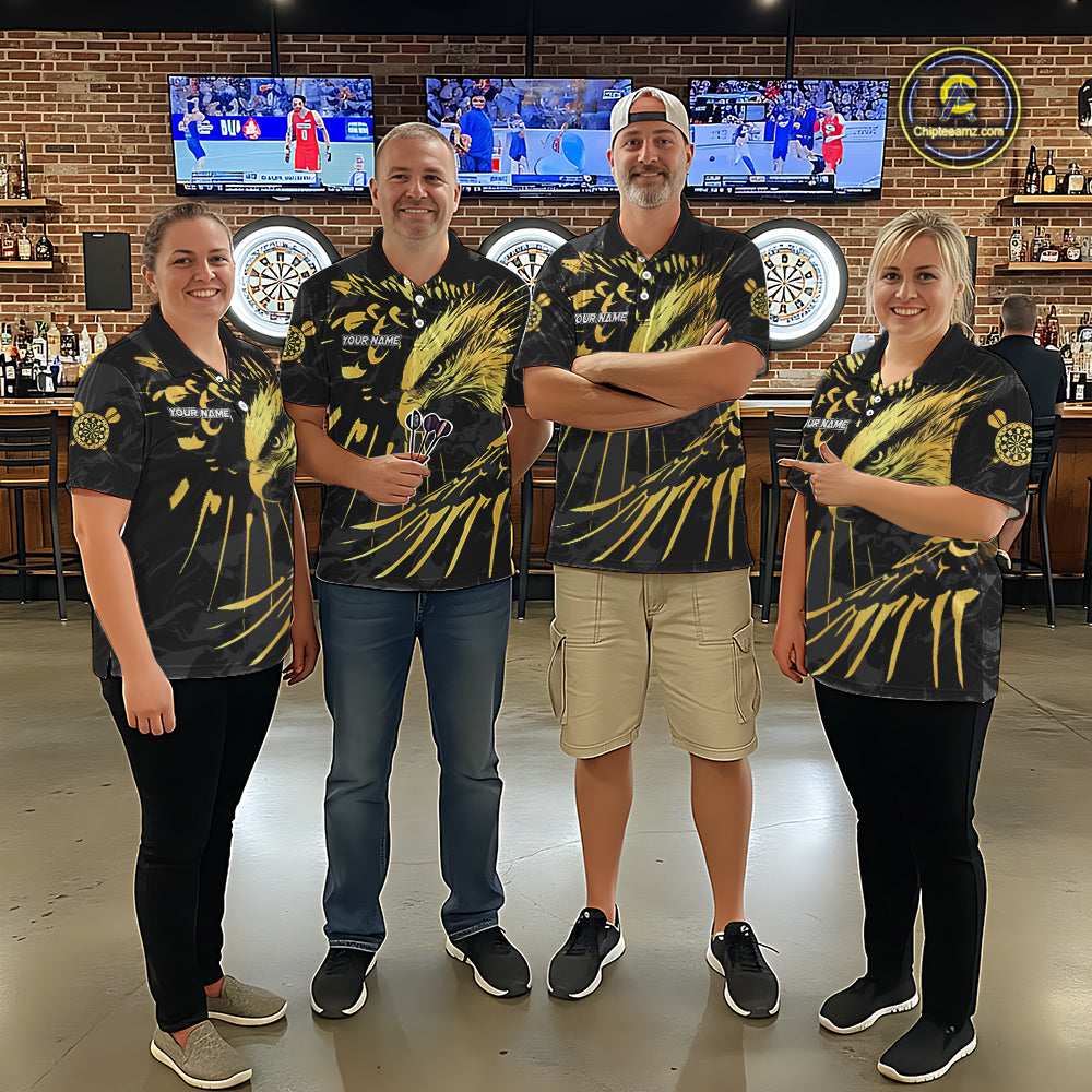Black And Gold Custom Eagle Paint Darts Shirt For Men, Darts League Jersey Team Polo & 1/4 Zip TDM5475